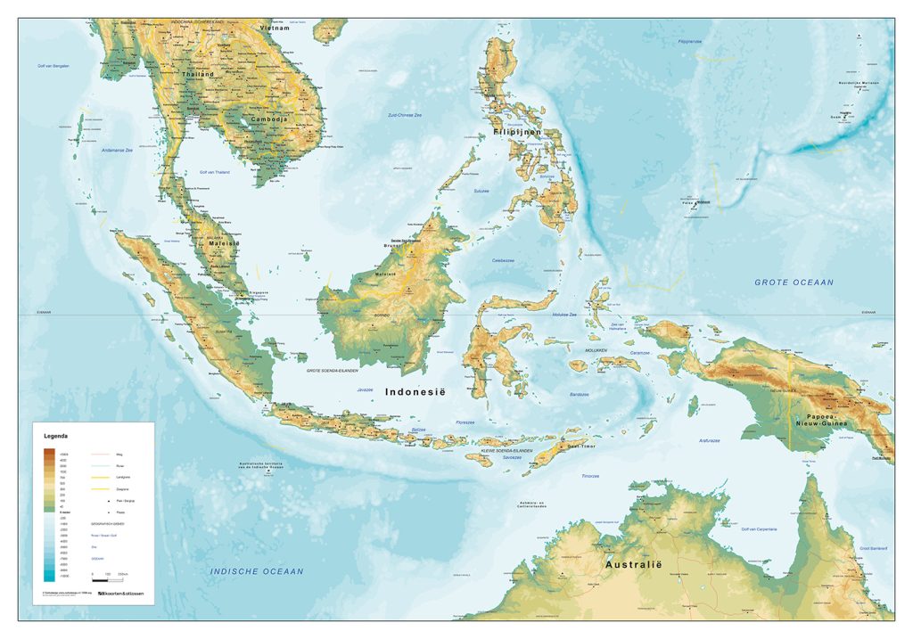 De staatkundige kaart van Indonesië toont de namen van de eilanden, provincies, plaatsnamen en grenzen, terwijl de natuurkundige kaart de geografische kenmerken zoals bergen, rivieren en kustlijnen van dit fascinerende eilandenrijk in beeld brengt.