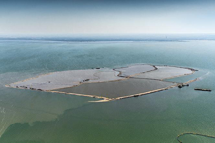 In het Markermeer nabij de Houtribdijk worden eilanden opgespoten die uiteindelijk een totaal oppervlakte van 10.000 hectare moeten krijgen: de Marker Wadden