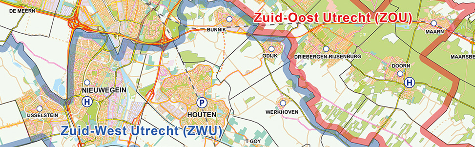 We hebben voor verschillende organisaties kaarten gemaakt met locatieaanduiding binnen het desbetreffende werkgebied. Maar daarnaast ook varianten waarin de werkgebieden in een bepaalde huisstijl zijn ingevuld. Uiteraard kan op elke kaart een logo en titel geplaatst worden.