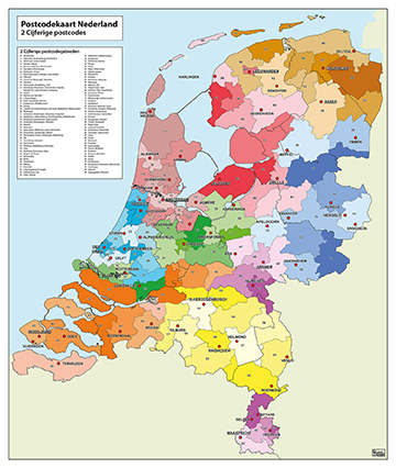 Postcodekaart van Nederland, 2 cijfers.