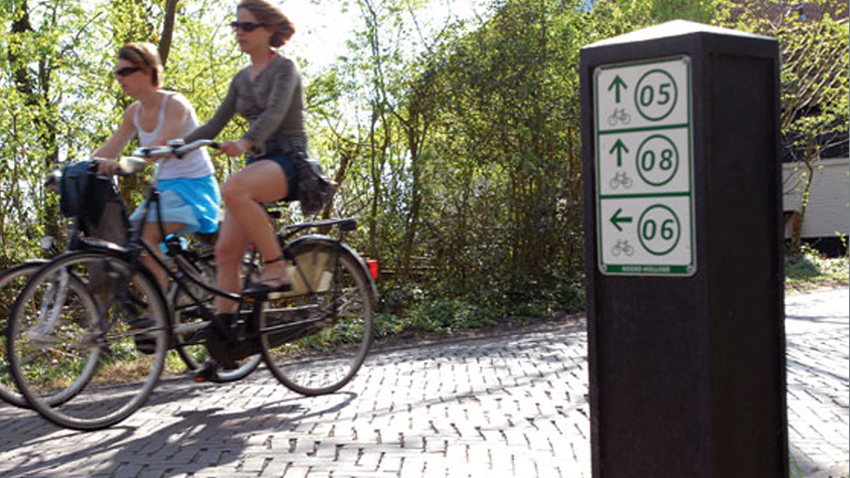De herkenbare fietsknooppunten die je in heel Nederland ziet.