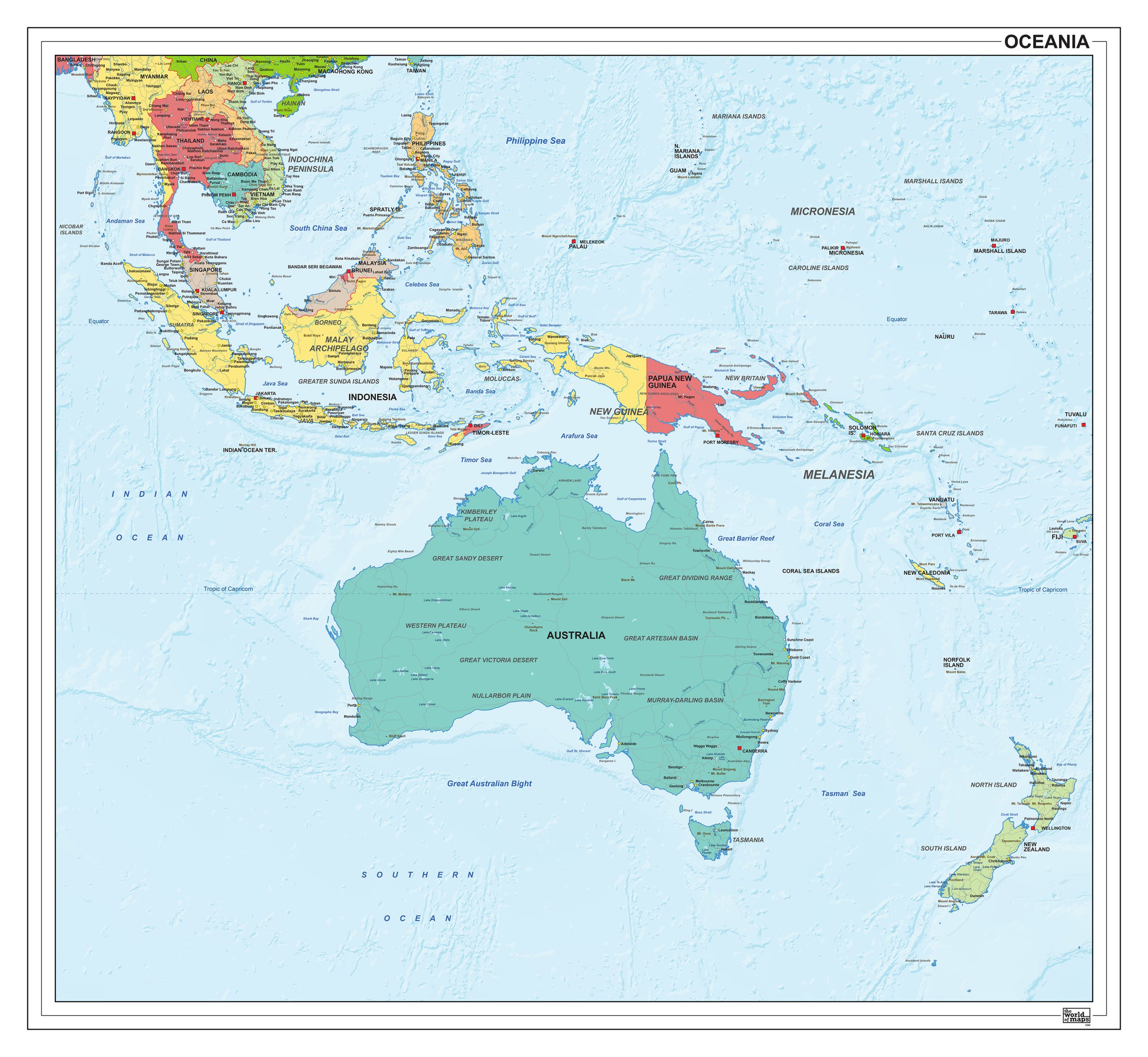 • Engelstalige staatkundige kaart van Oceanië