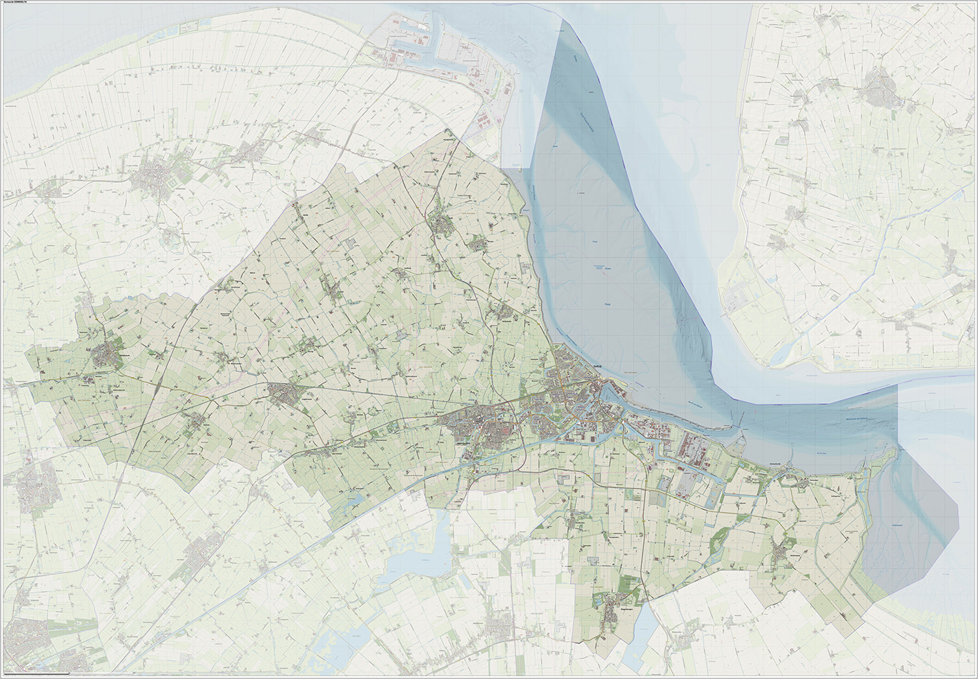 Het kaartmateriaal kan op ieder formaat worden afgedrukt mits de bovenstaande formaten niet worden overschreden. Grotere kaarten kunnen op meerdere panelen worden afgedrukt.
