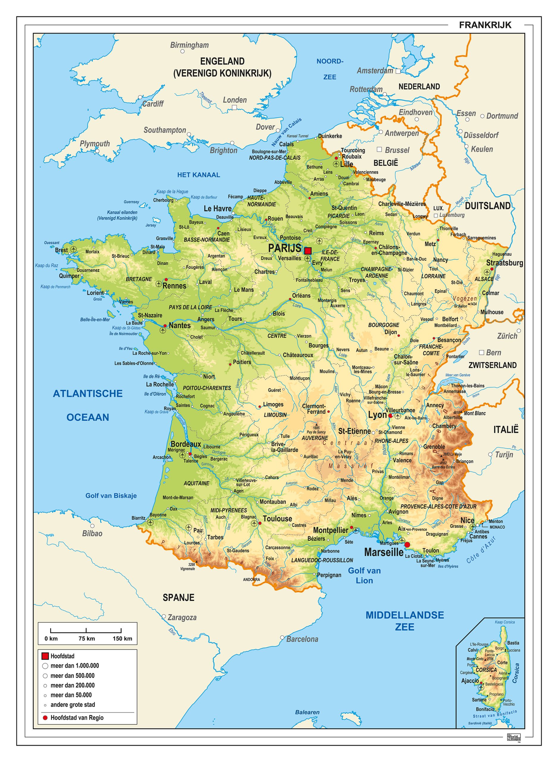 Frankrijk Kaart Natuurkundig 766