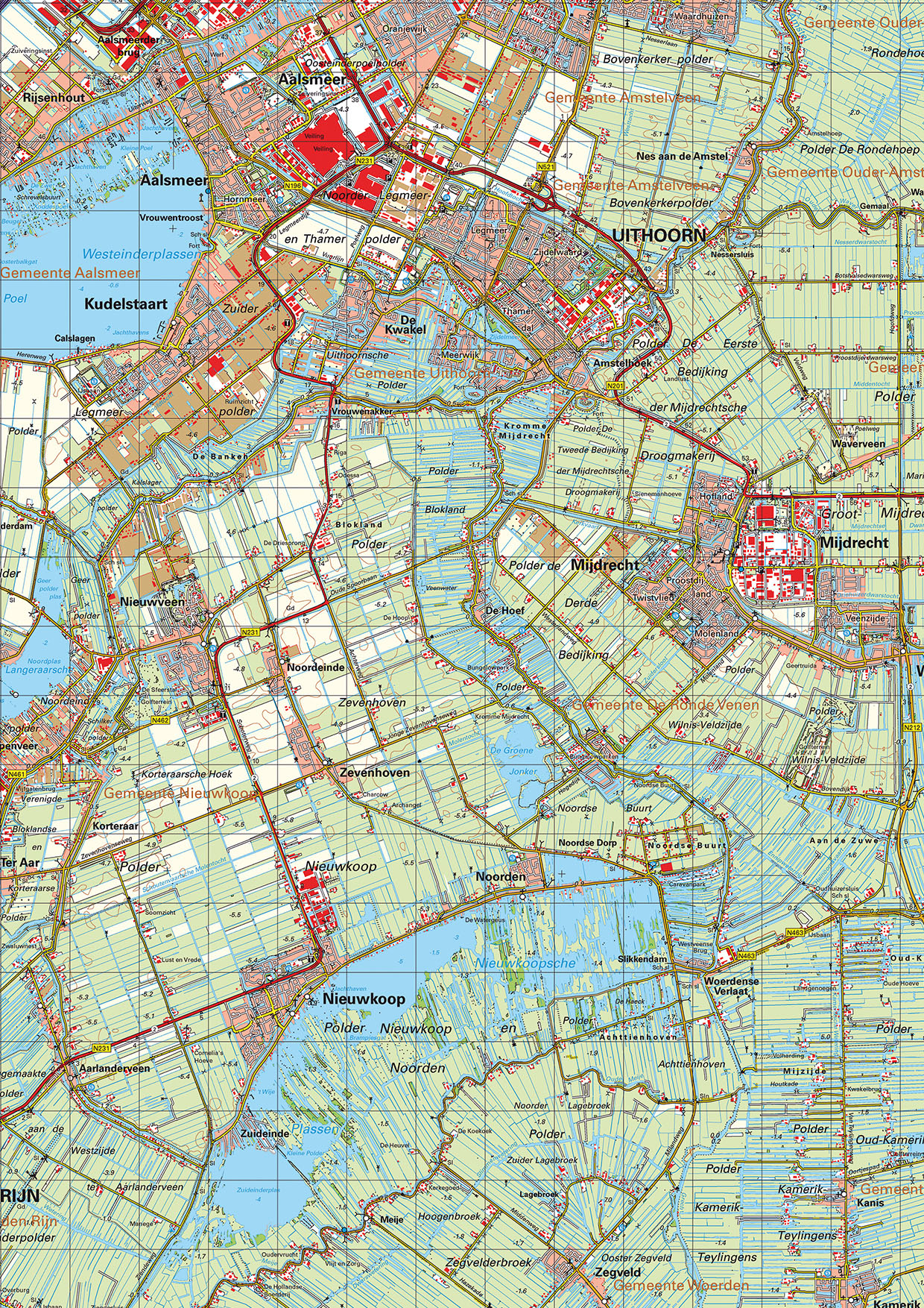 • Alle plaatsen, wegen, wateren, spoorlijnen en pontverbindingen zijn weergegeven