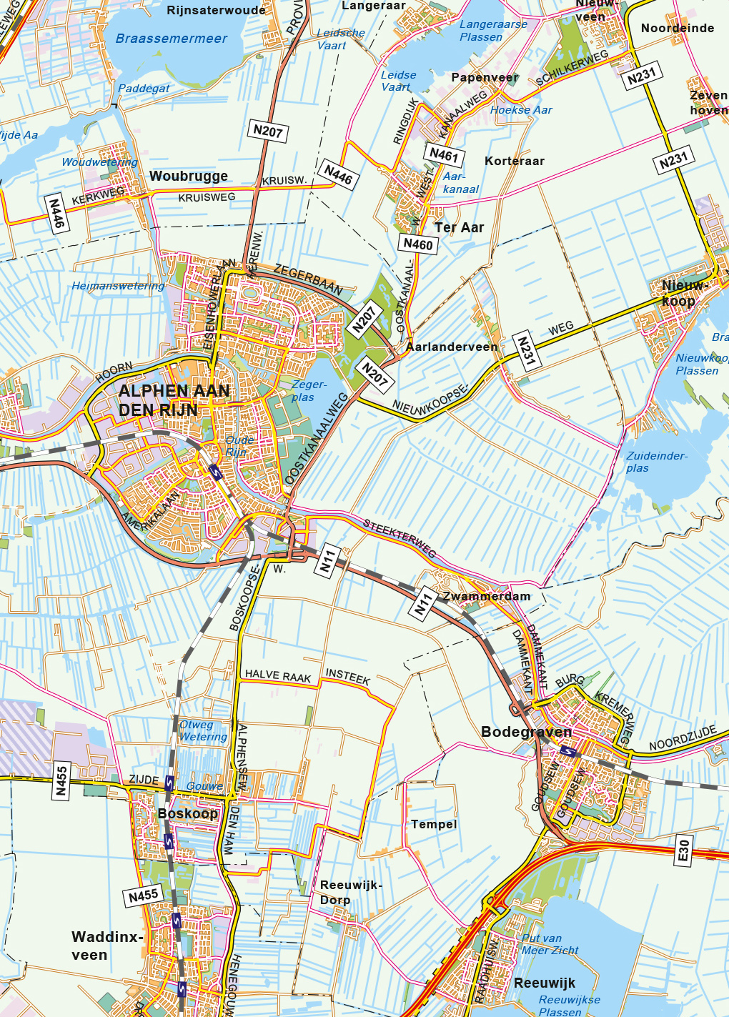 Moderne kaart van de Randstad met zeer veel informatie. De kaart laat duidelijk alle gehuchten en buurtschappen zien, evenals alle wegen. Deze kaart van Nederland is ook als digitale kaart te bestellen.