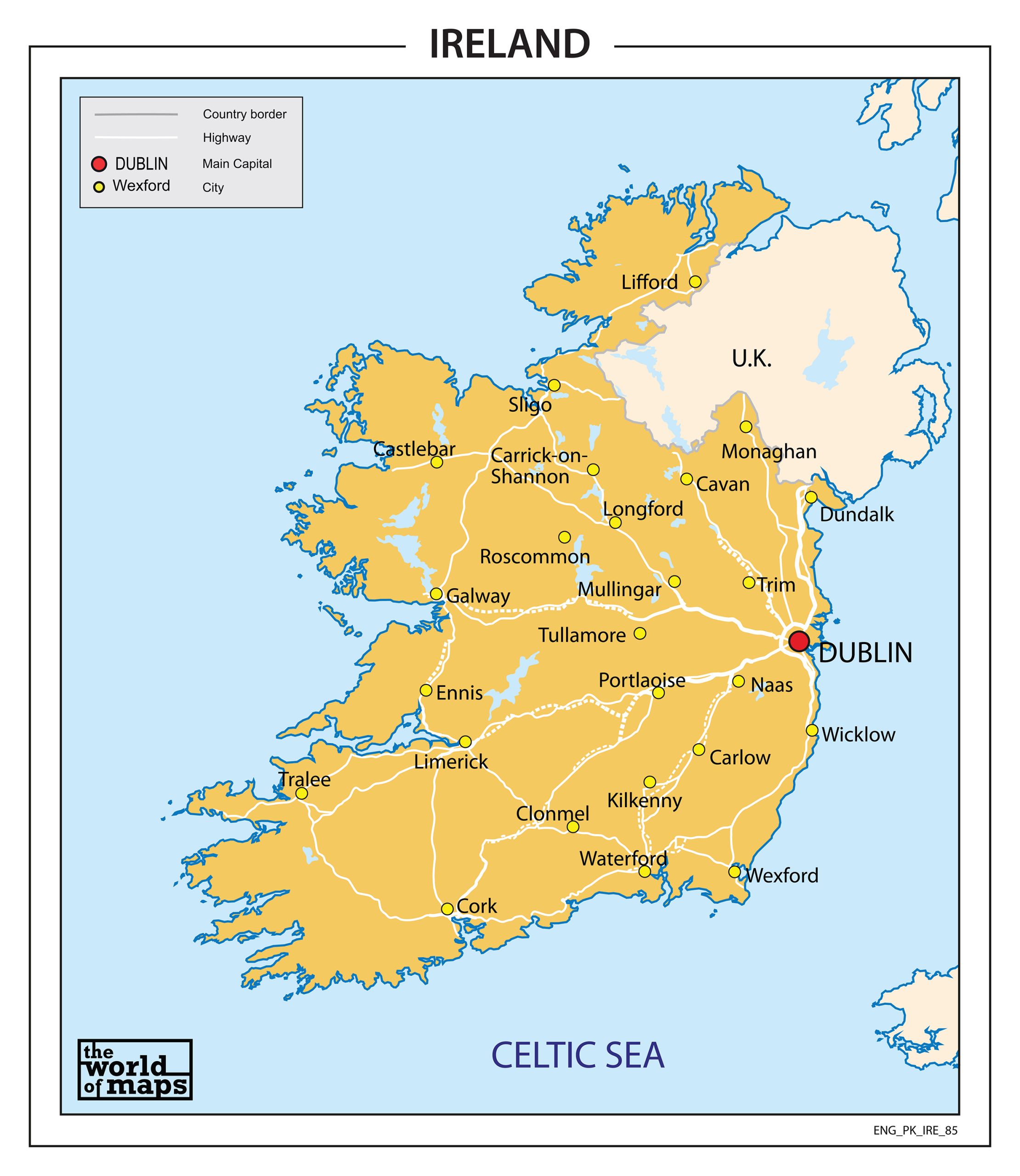 Duidelijke 3-cijferige postcodekaart van Ierland. Engelstalig. Met duidelijk legenda overzicht.