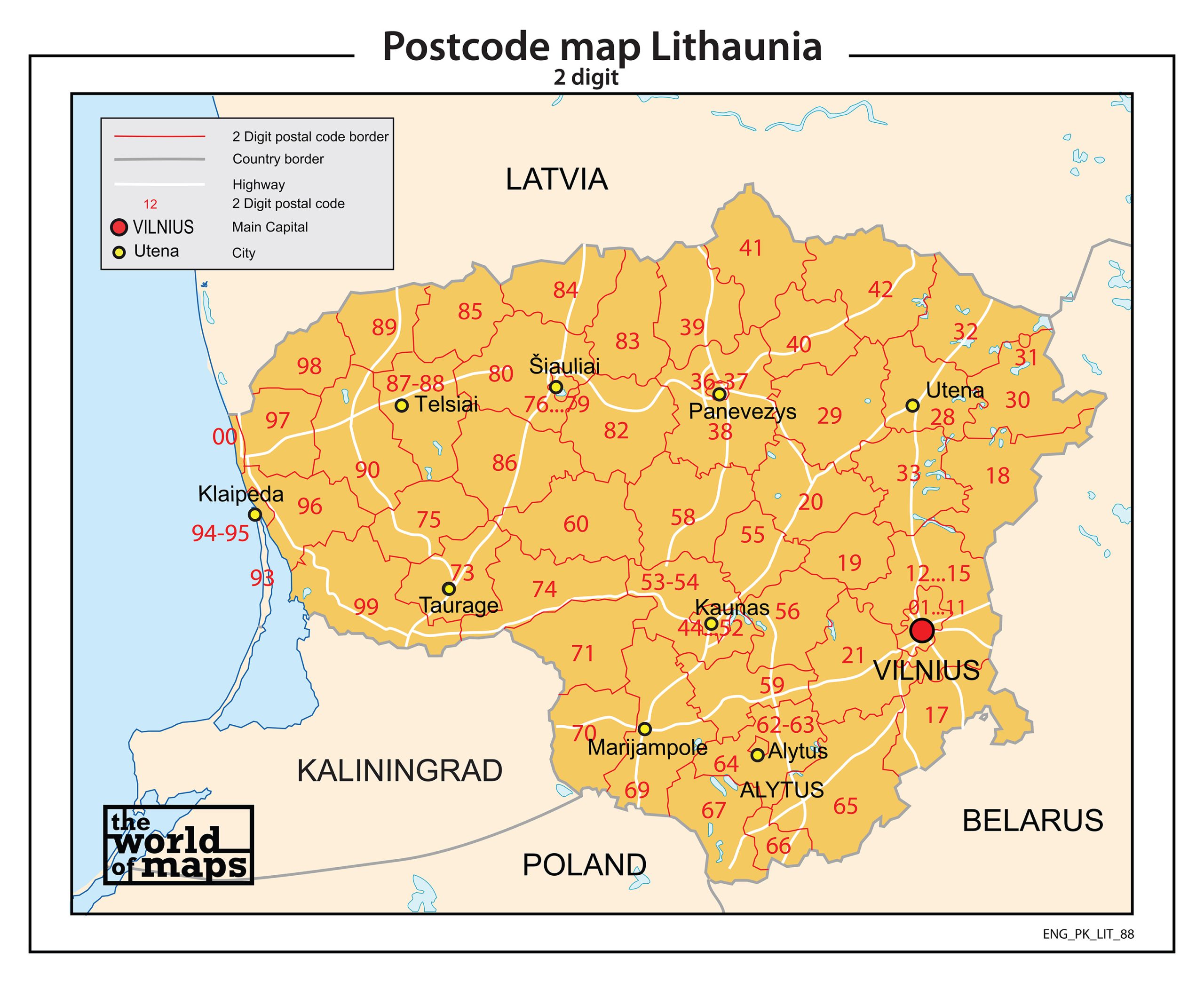 Litouwen 2-cijferige postcodekaart 88