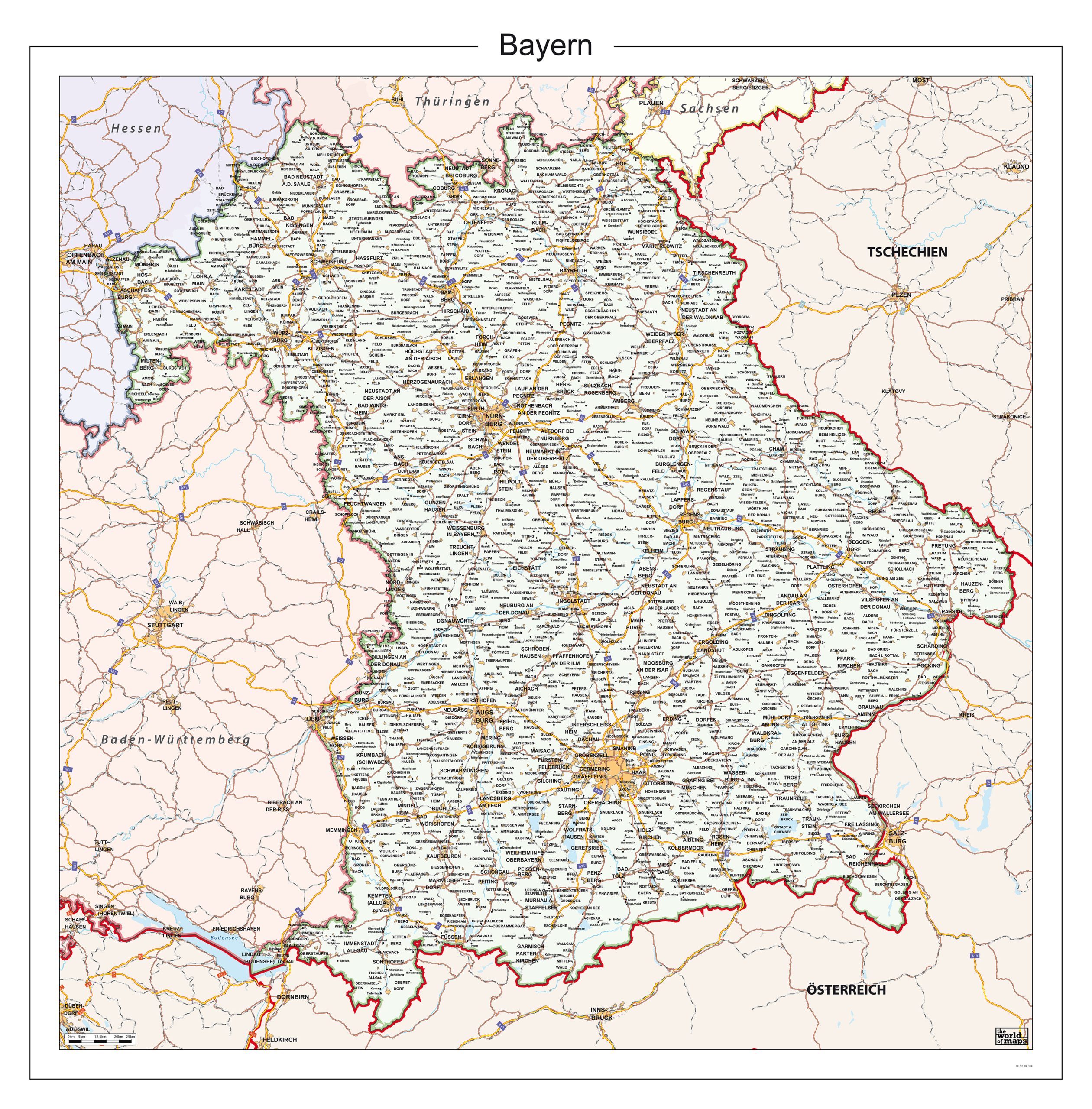 • Staatkundige kaart van de Deelstaat Bayern