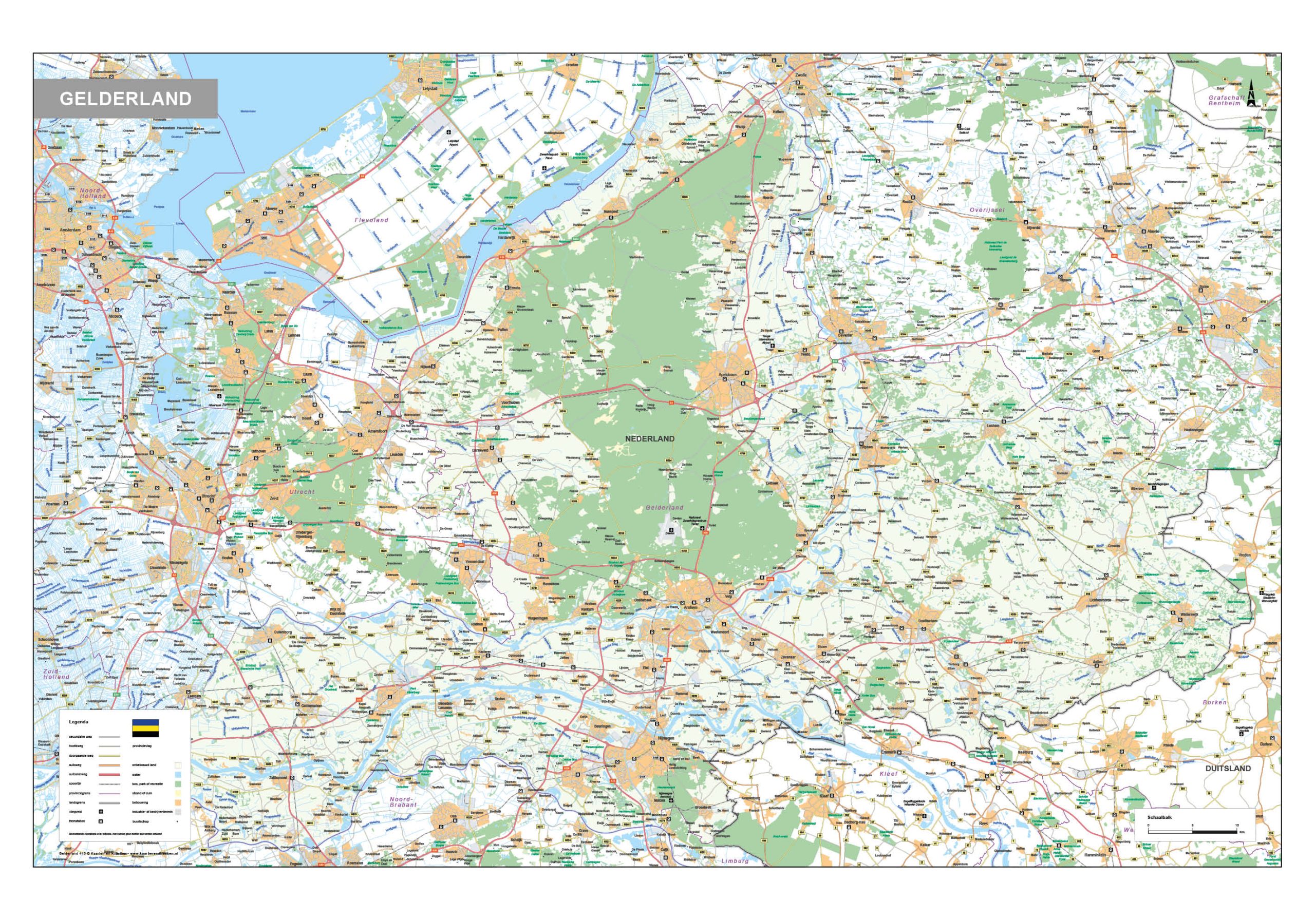 • Kaart van de provincie Gelderland met legenda