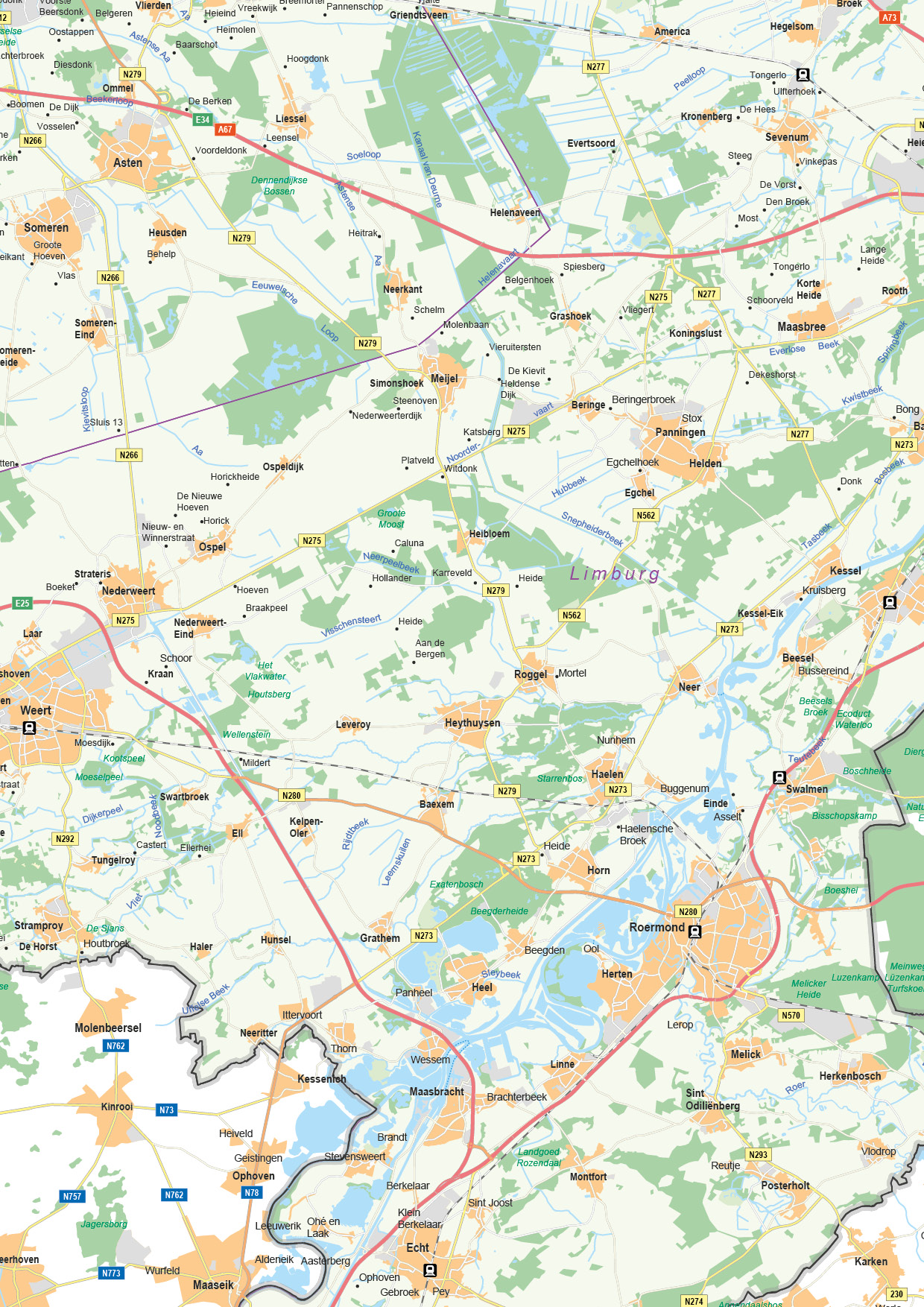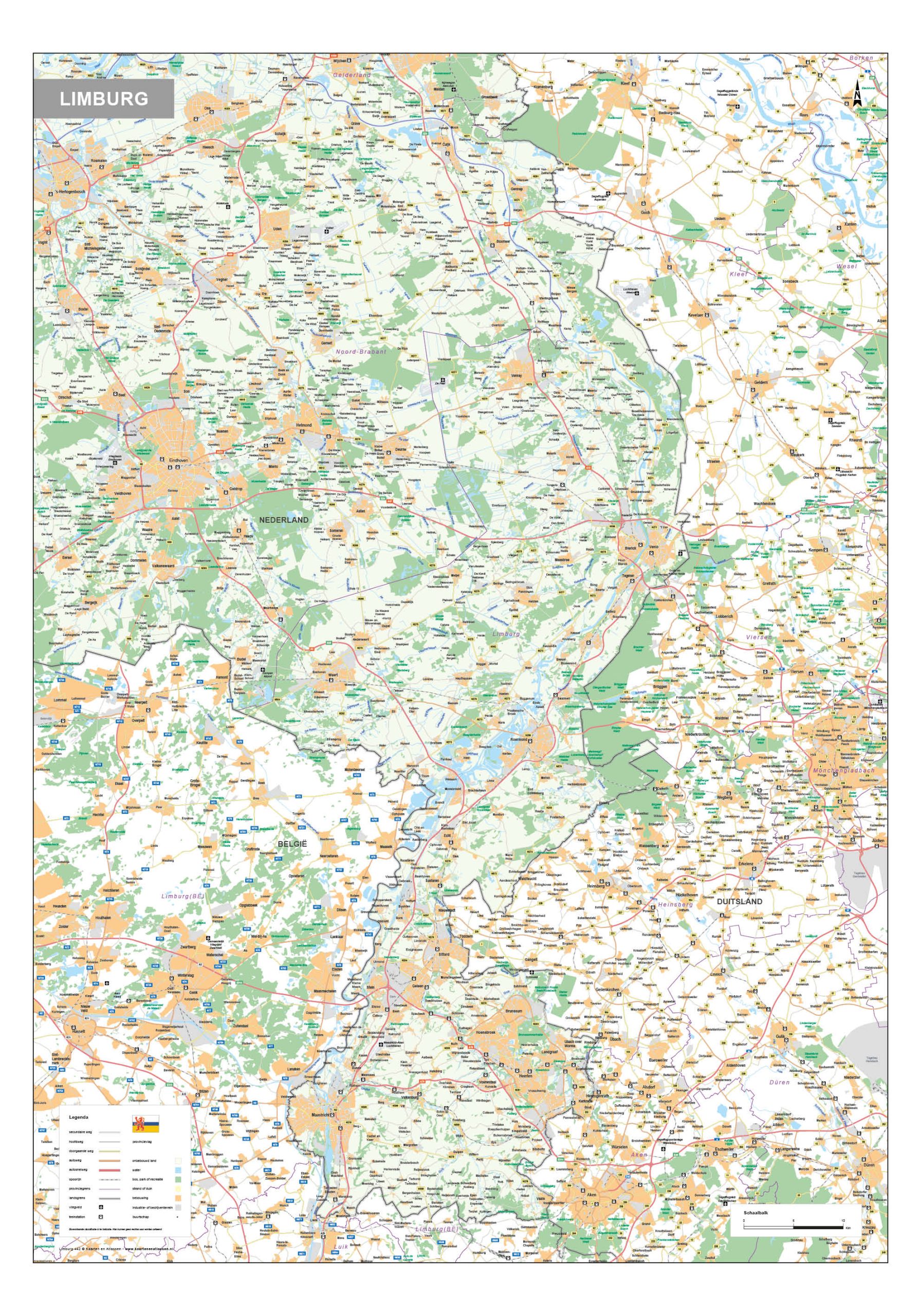 Alle details zoals plaatsen, buurtschappen, wegen, wateren en spoorlijnen zijn afgebeeld. Ook het grondgebruik is aangegeven. Met duidelijke legenda. Ook leverbaar als topografische kaart Limburg 1481.