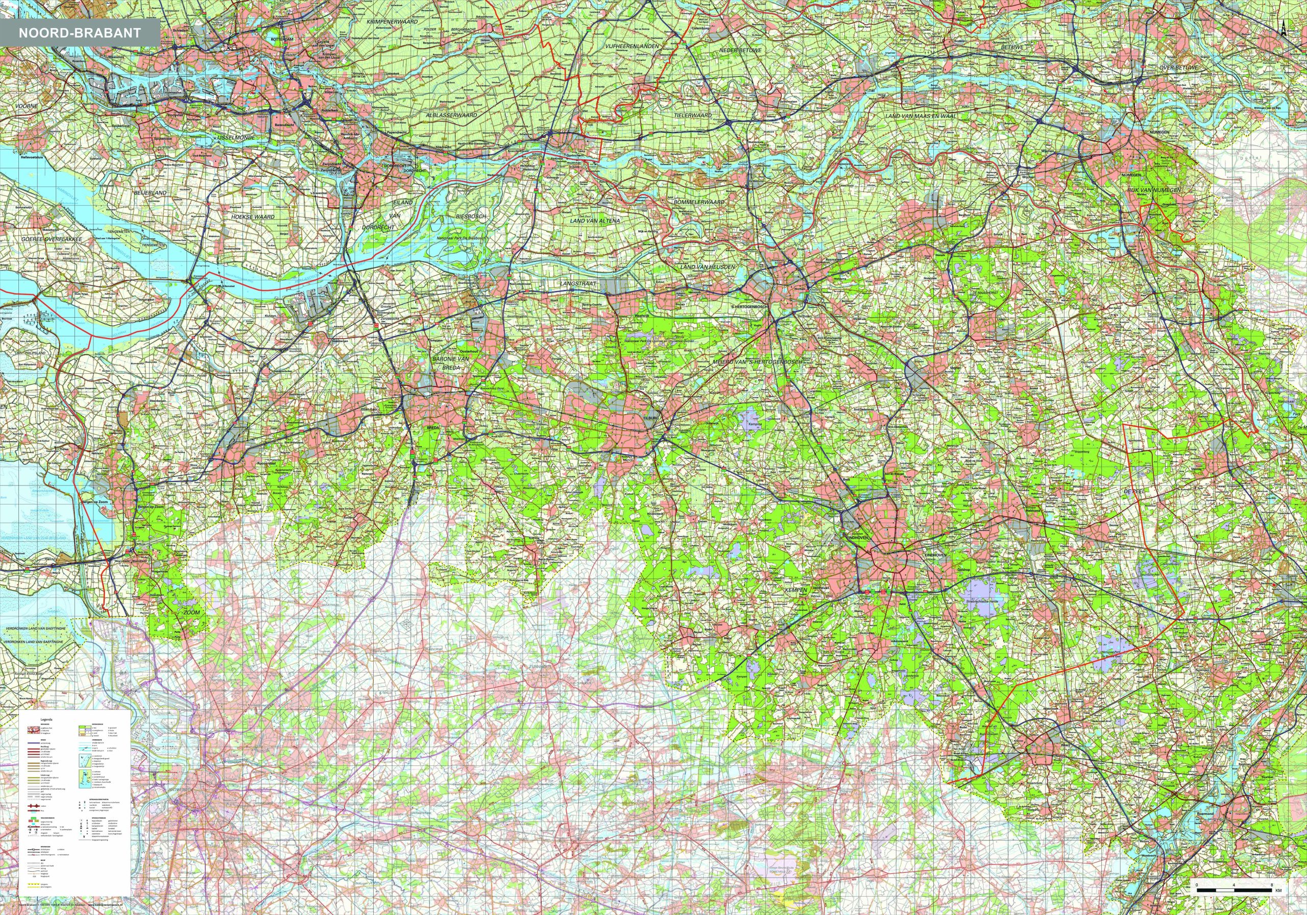 • Duidelijke topografische kaart in de schaal 1:100.000 van de provincie Noord-Brabant