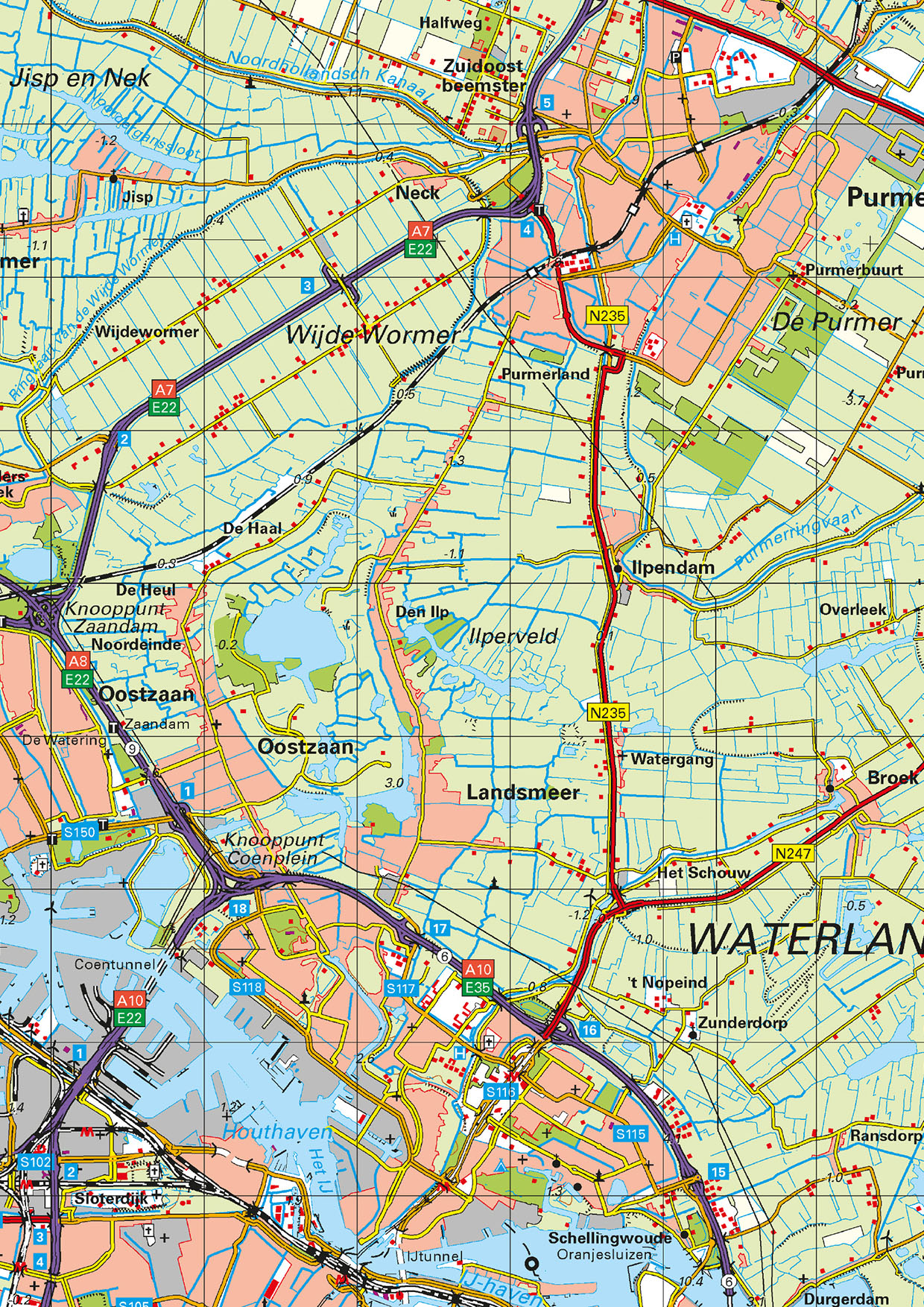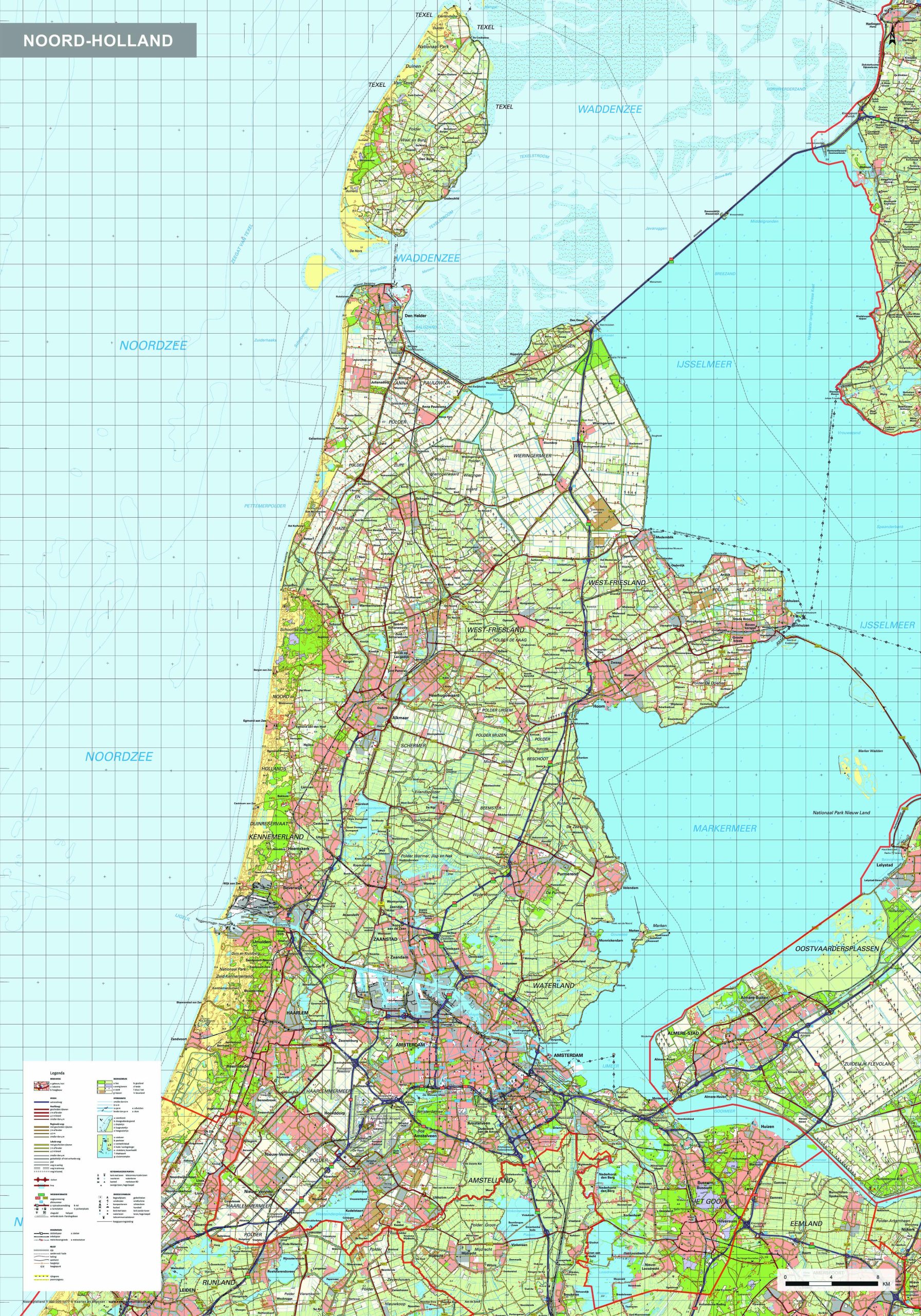 Provinciekaart van Noord-Holland waarop alle steden, dorpen en grotere gehuchten, wegen en wateren duidelijk zijn afgebeeld. De kaart bevat informatie zeer veel topografische informatie. Zo zijn bijvoorbeeld alle boerderijen, begraafplaatsen en windmolens afgebeeld. Van alle andere provincies zijn deze kaarten ook verkrijgbaar. Ook als uitgelichte versie leverbaar.