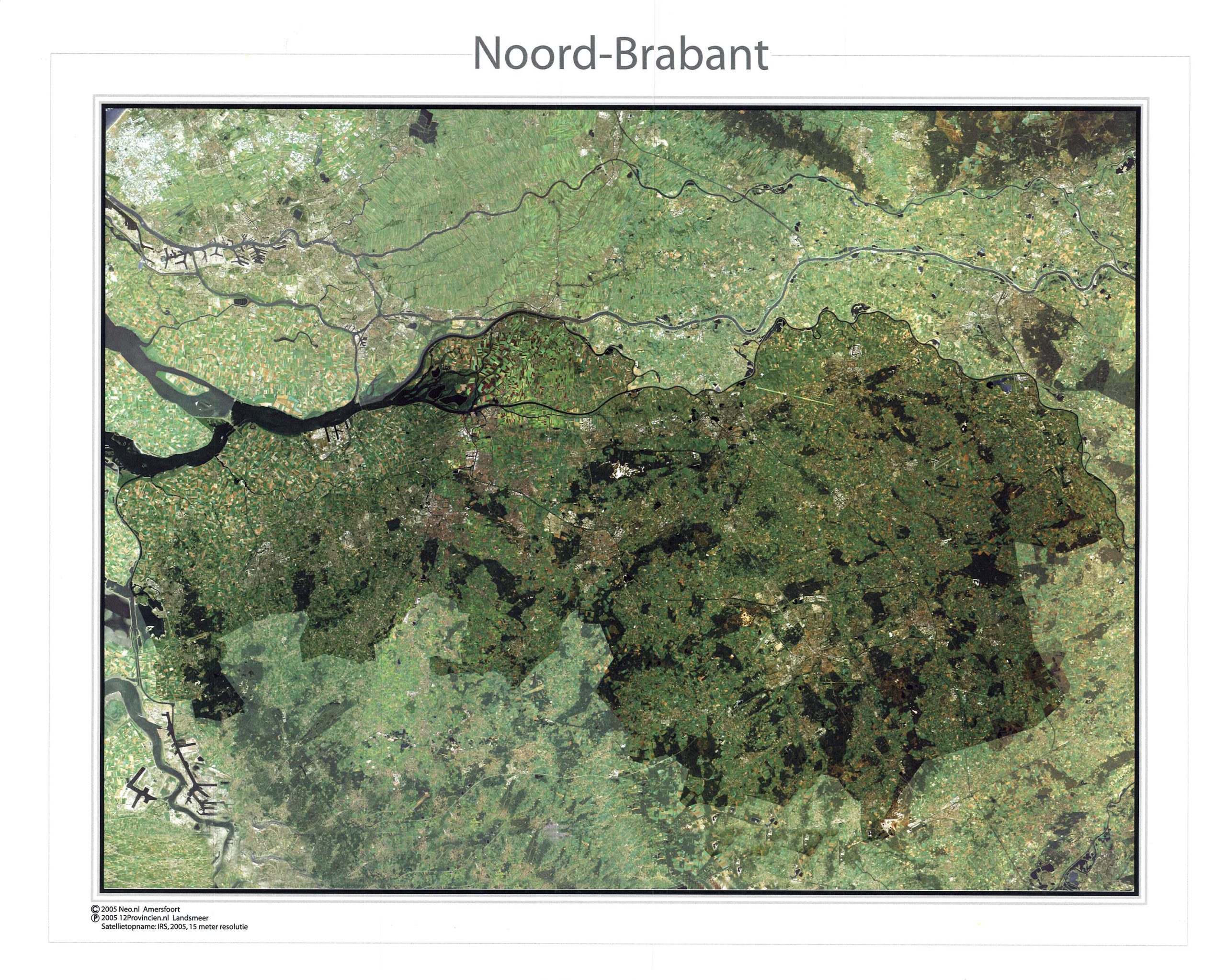 Satellietopname Noord-Brabant gemaakt door IRS Satelliet, resolutie 15 meter. De beelden dateren uit 2005.