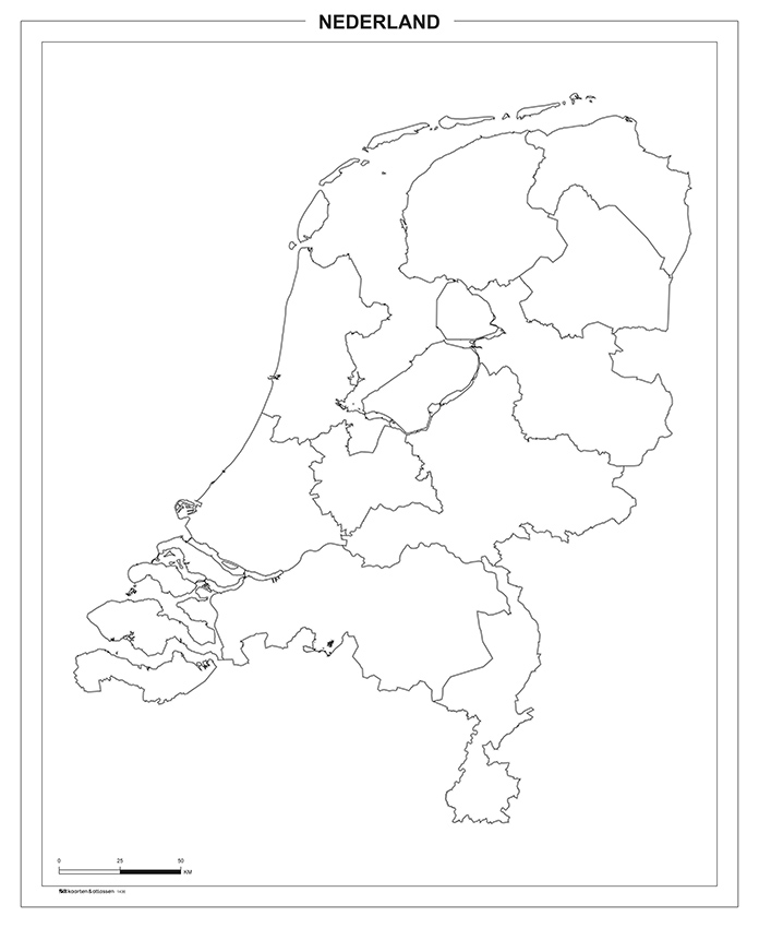 Blinde kaart kaart van Nederland. Ideaal voor gebruik op scholen. Alle provincies zijn weergegeven. De glans gelamineerde uitvoering is het meest geschikt voor scholen omdat deze na het beschrijven heel goed uitwisbaar is. De kaart is zeer geschikt om te oefenen, met name voor de groepen 5 en 6. Voor gebruik in de klas raden we het formaat 100×130 cm aan.