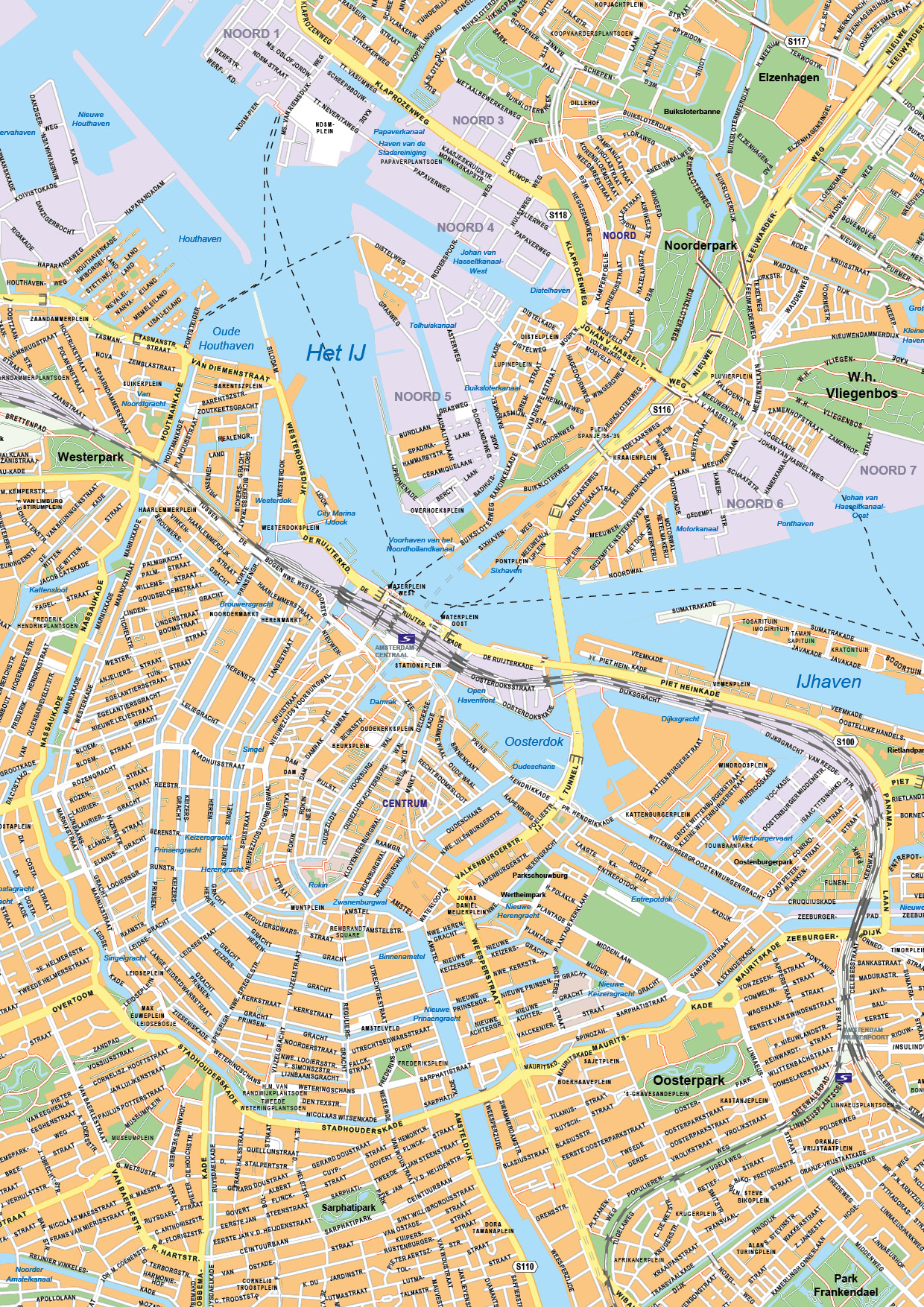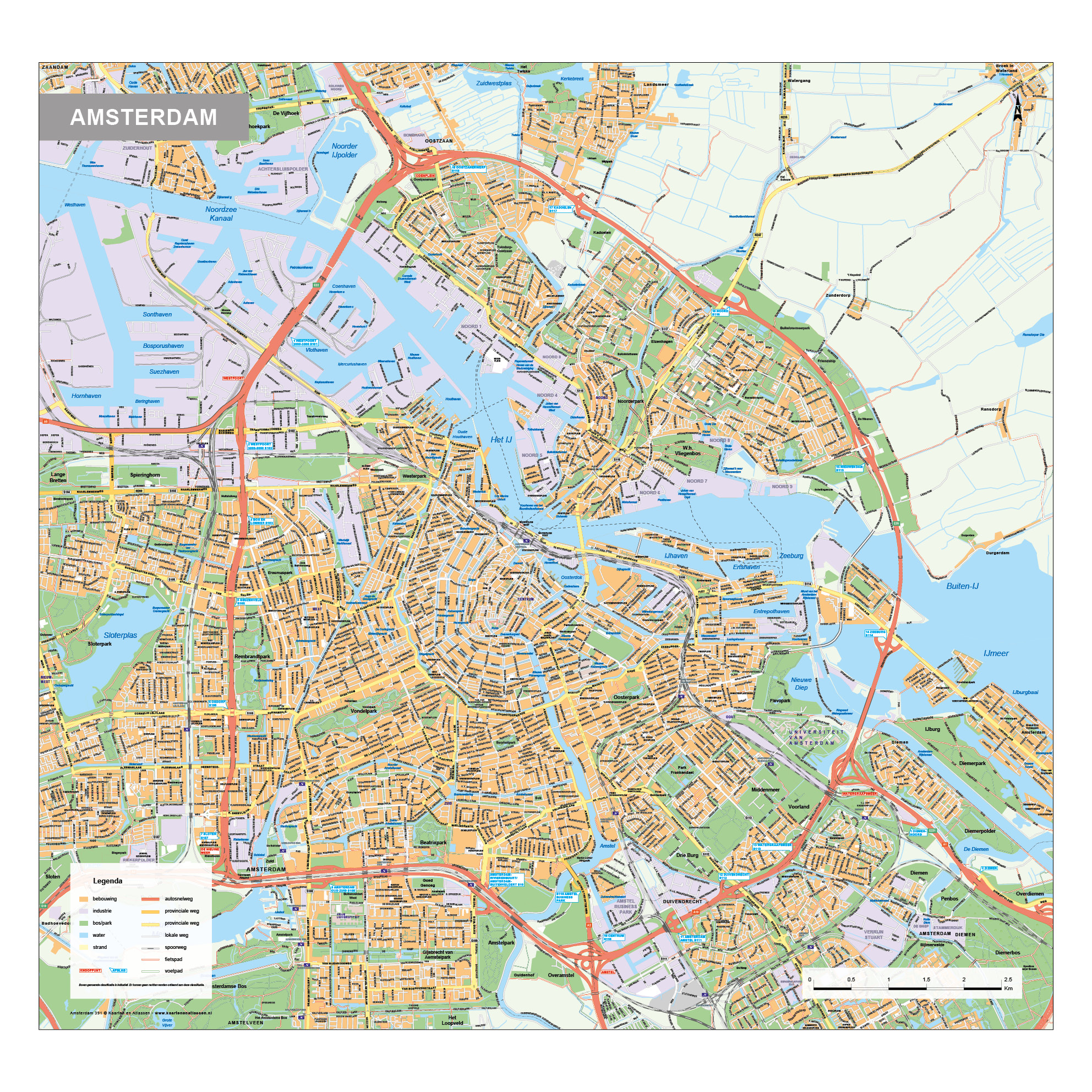 • Duidelijke kaart van Amsterdam met bijna alle straten en straatnamen