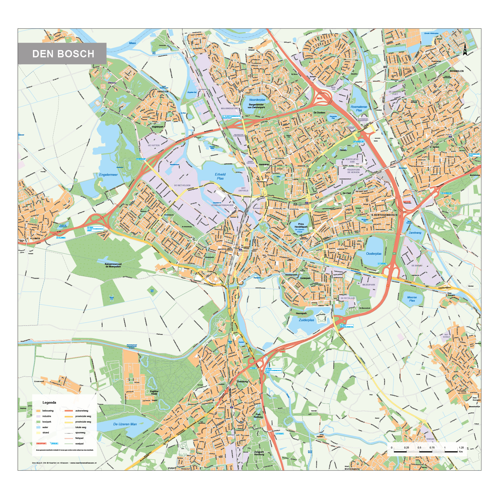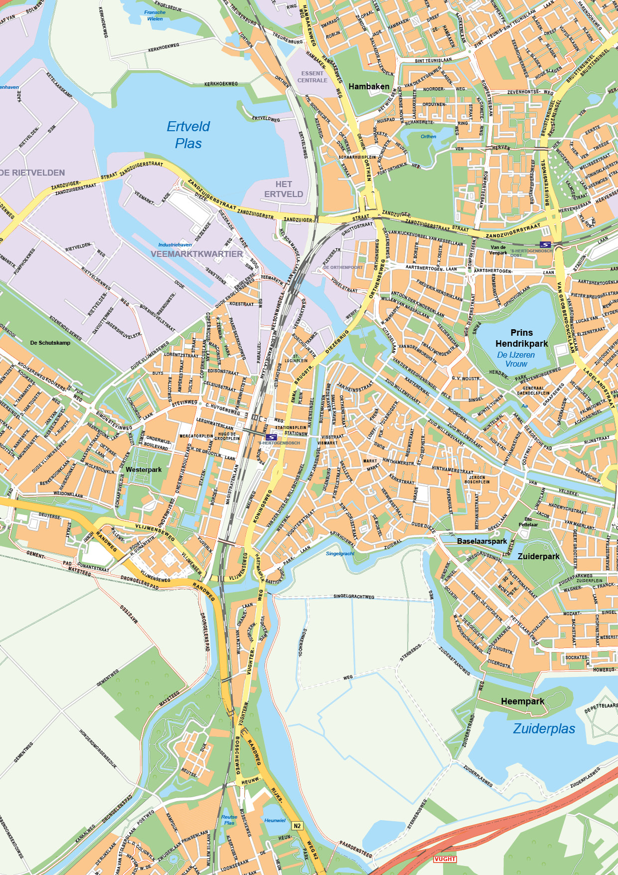 Straatnamenkaart van Den Bosch. Geeft op een zeer duidelijke manier bijna alle straten weer. Bekijk ook onze andere stadsplattegronden van Nederland.