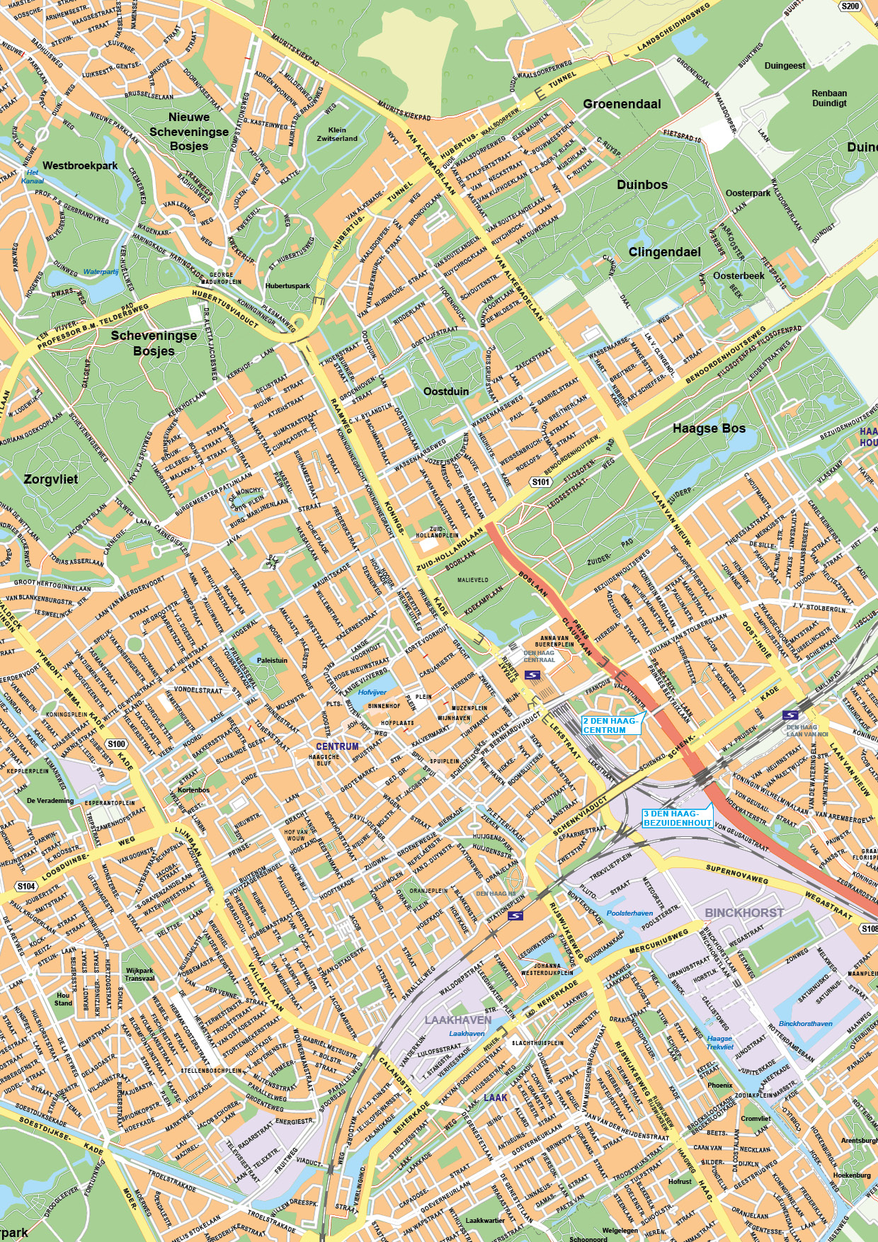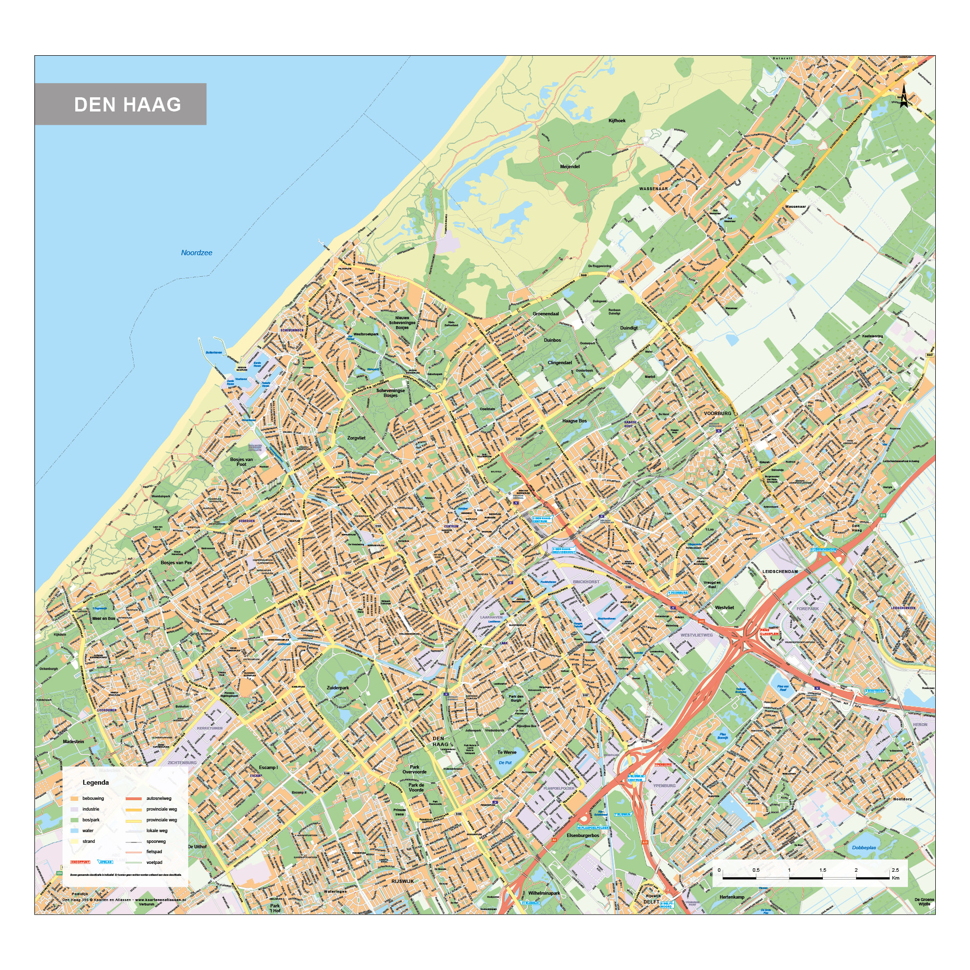 Straatnamenkaart van Den Haag. Geeft op een zeer duidelijke manier bijna alle straten weer. Bekijk ook onze andere stadsplattegronden van Nederland.