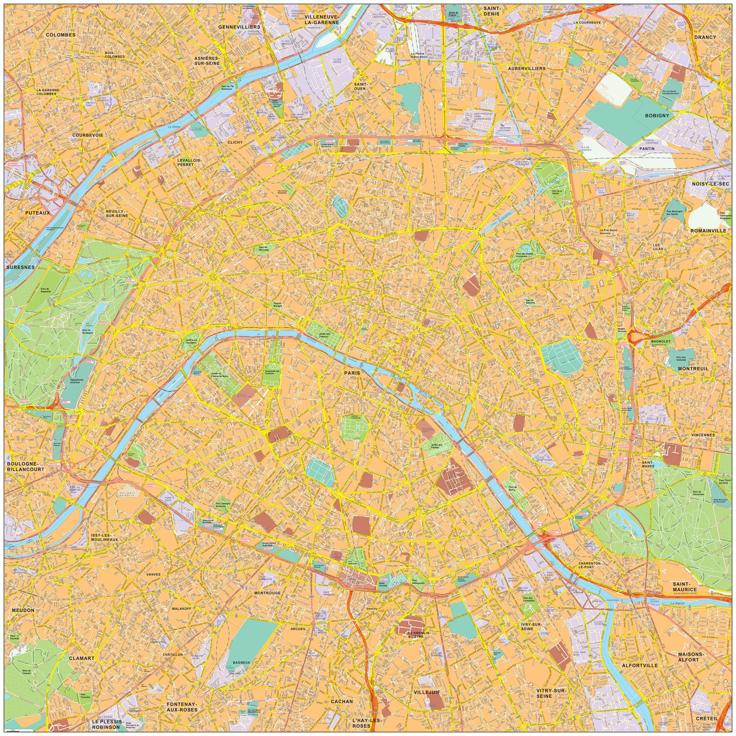 Straatnamenkaart van Parijs. Geeft op een zeer duidelijke manier bijna alle straten weer.