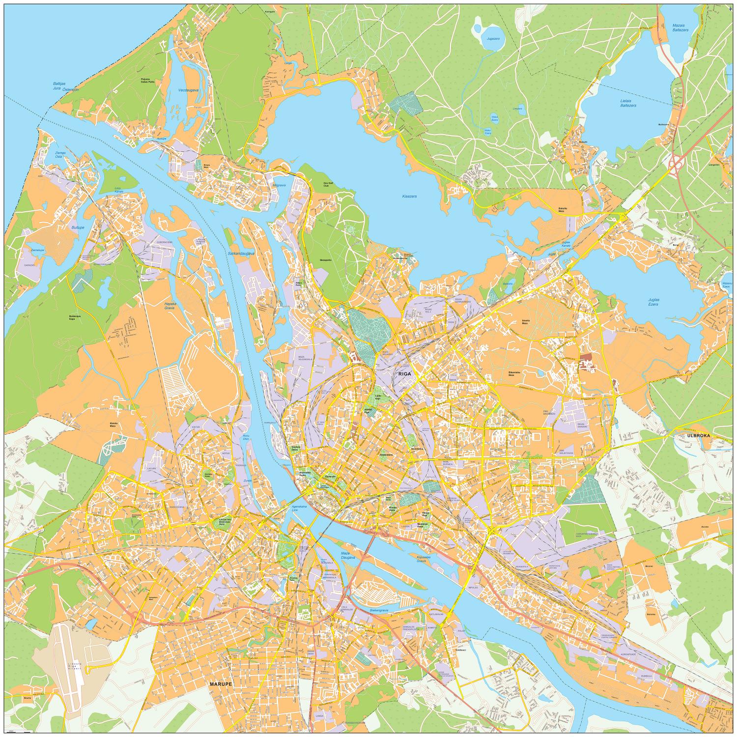 Straatnamenkaart van Riga. Geeft op een zeer duidelijke manier bijna alle straten weer.