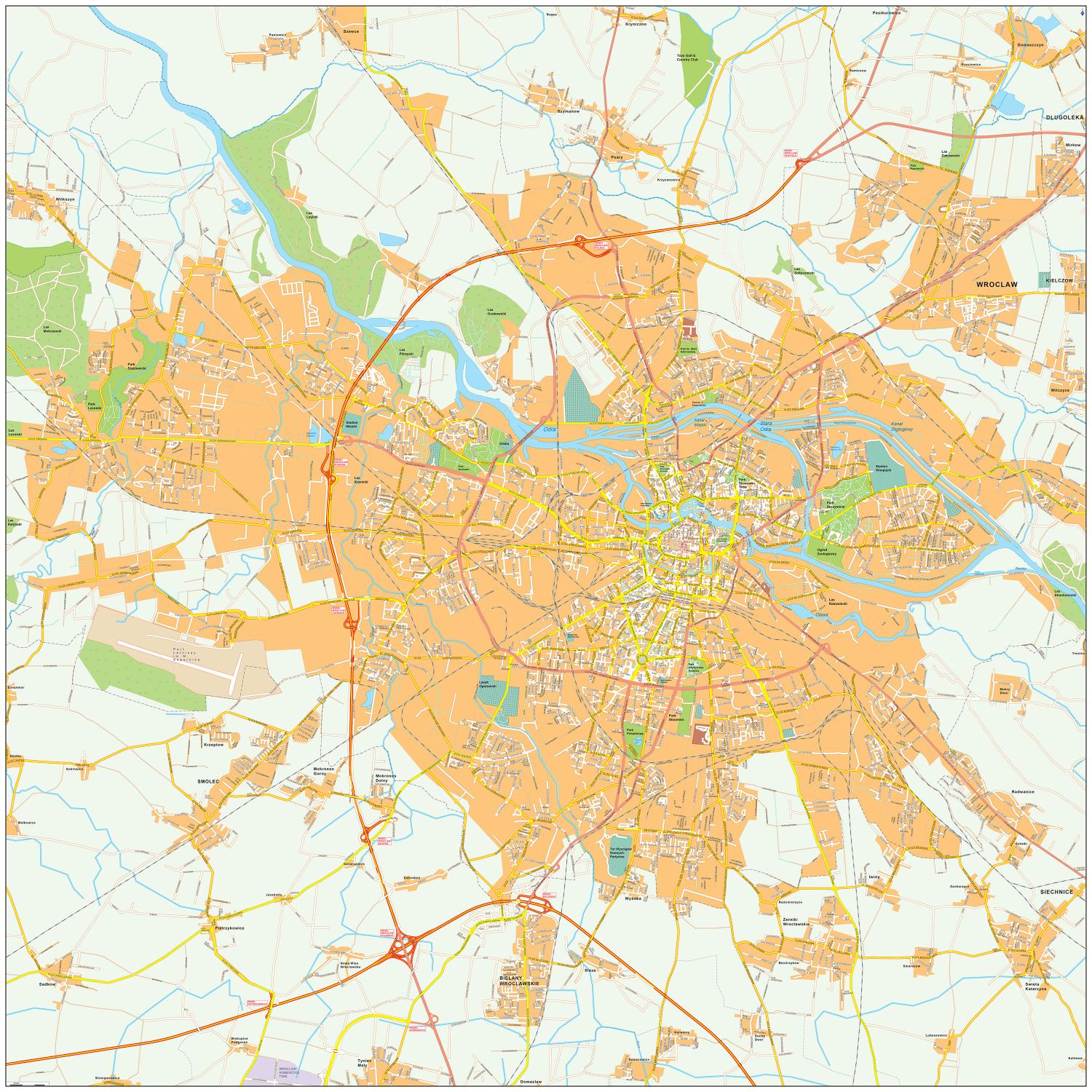 • Duidelijke stadsplattegrond van Wroclaw met vrijwel alle straten en hun namen
