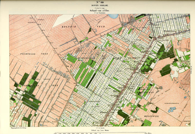 De gebieden waar verdedigingslinies lagen, bracht men eerst in kaart. Dit waren vooral stroken terrein langs de grote rivieren en later ook rond Amsterdam. Pas later werd de rest van Nederland gekarteerd. Rond 1884 besloeg de kaartserie heel Nederland.