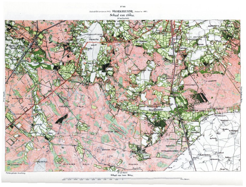De gebieden waar verdedigingslinies lagen, bracht men eerst in kaart. Dit waren vooral stroken terrein langs de grote rivieren en later ook rond Amsterdam. Pas later werd de rest van Nederland gekarteerd. Rond 1884 besloeg de kaartserie heel Nederland.