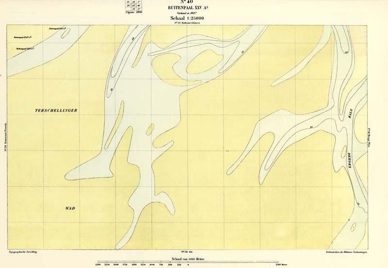 De gebieden waar verdedigingslinies lagen, bracht men eerst in kaart. Dit waren vooral stroken terrein langs de grote rivieren en later ook rond Amsterdam. Pas later werd de rest van Nederland gekarteerd. Rond 1884 besloeg de kaartserie heel Nederland.