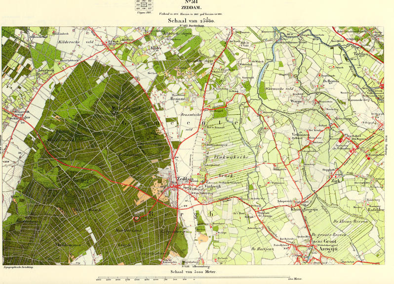 De gebieden waar verdedigingslinies lagen, bracht men eerst in kaart. Dit waren vooral stroken terrein langs de grote rivieren en later ook rond Amsterdam. Pas later werd de rest van Nederland gekarteerd. Rond 1884 besloeg de kaartserie heel Nederland.