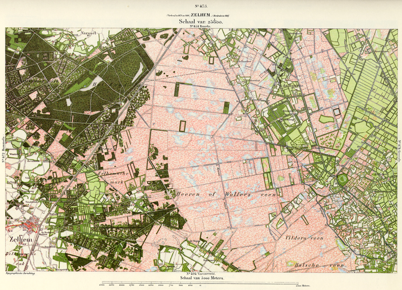 De gebieden waar verdedigingslinies lagen, bracht men eerst in kaart. Dit waren vooral stroken terrein langs de grote rivieren en later ook rond Amsterdam. Pas later werd de rest van Nederland gekarteerd. Rond 1884 besloeg de kaartserie heel Nederland.