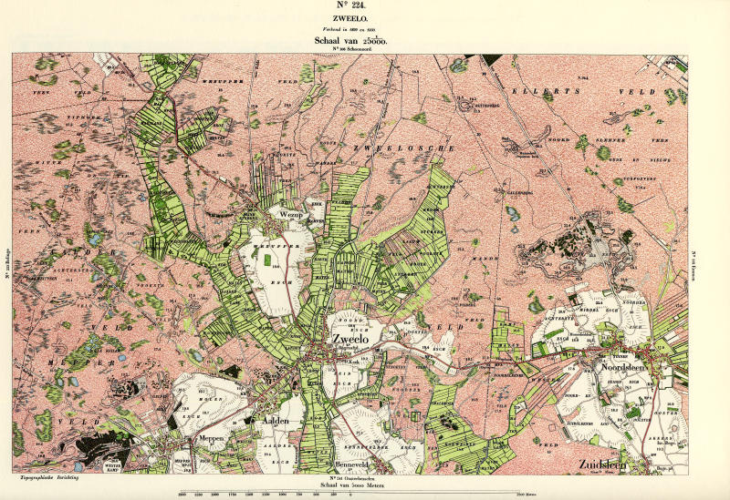 De gebieden waar verdedigingslinies lagen, bracht men eerst in kaart. Dit waren vooral stroken terrein langs de grote rivieren en later ook rond Amsterdam. Pas later werd de rest van Nederland gekarteerd. Rond 1884 besloeg de kaartserie heel Nederland.