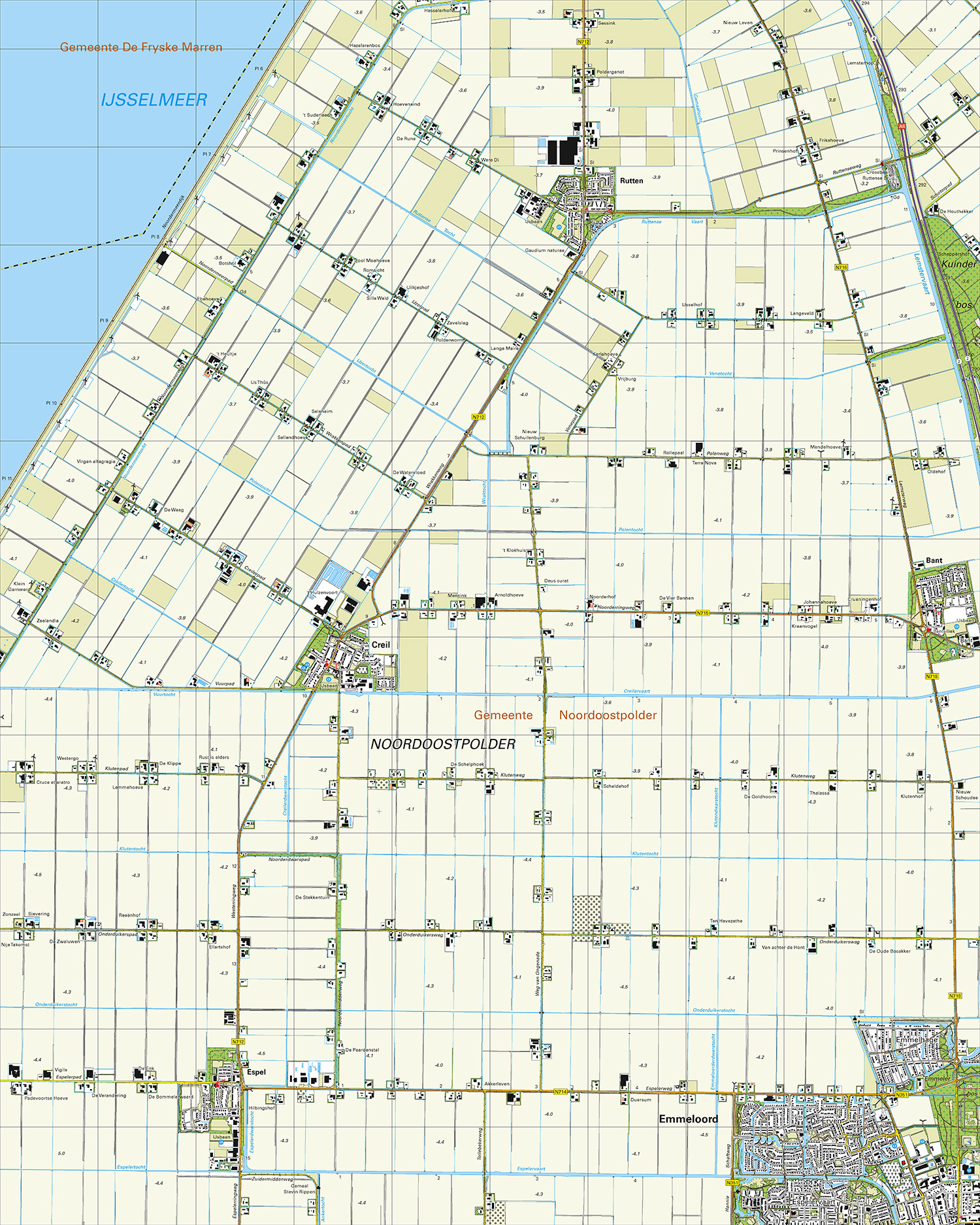 • Zeer gedetailleerde kaart van de Noordoostpolder