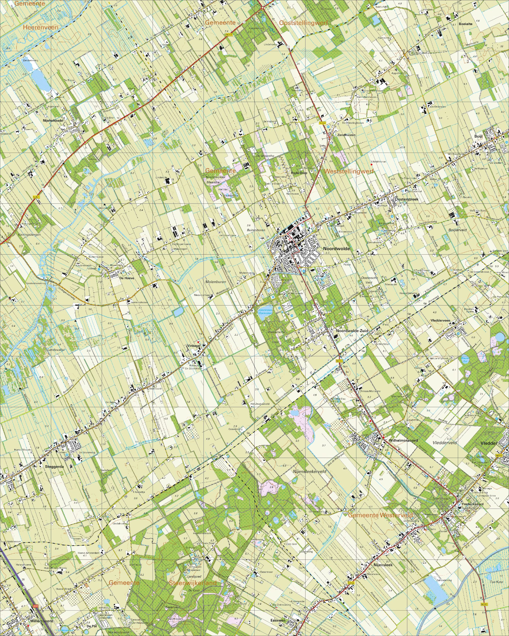• Zeer nauwkeurige en uitgebreide kaart van Noordwolde en omgeving