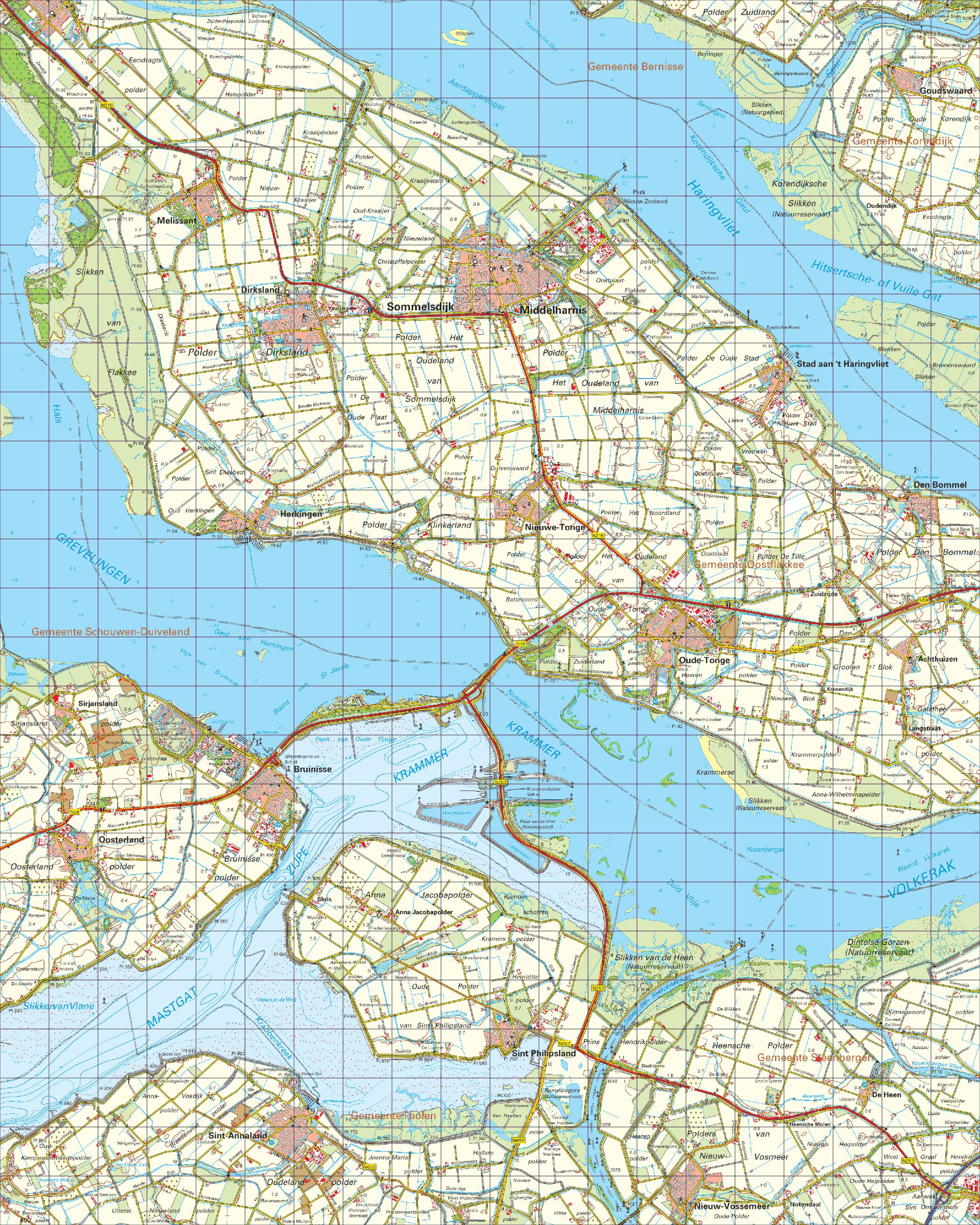 • Den Bommel Dirksland Goudswaard Herkingen Melissant Middelharnis Nieuwe-Tonge Oudendijk Sommelsdijk Stad aan 't Haringvliet Stellendam Achthuizen Bruinisse De Heen Oosterland Oude-Tonge Sirjansland Sluis St Annaland St Philipsland Anna Jacobapolder