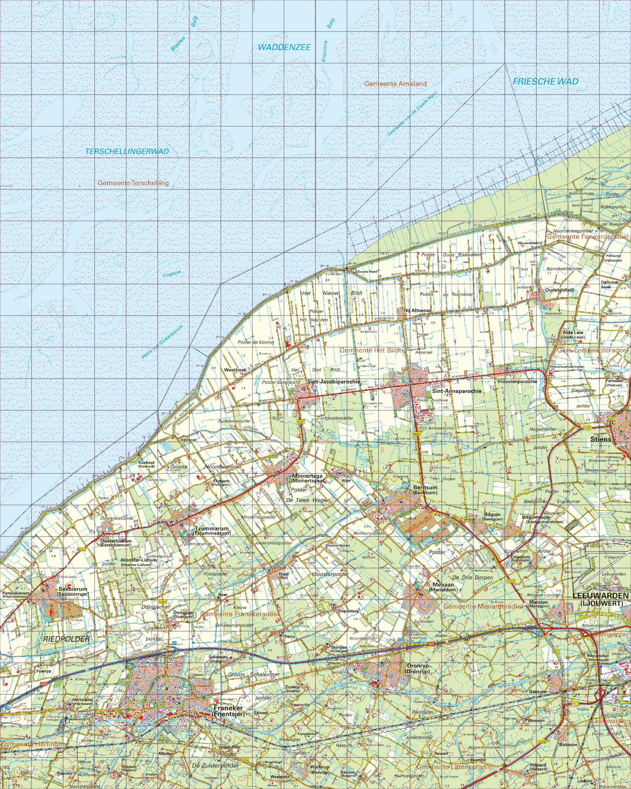 • Toont zeer nauwkeurig bebouwing, wegen, spoorwegen, grenzen, reliëf, symbolen en bodemgebruik