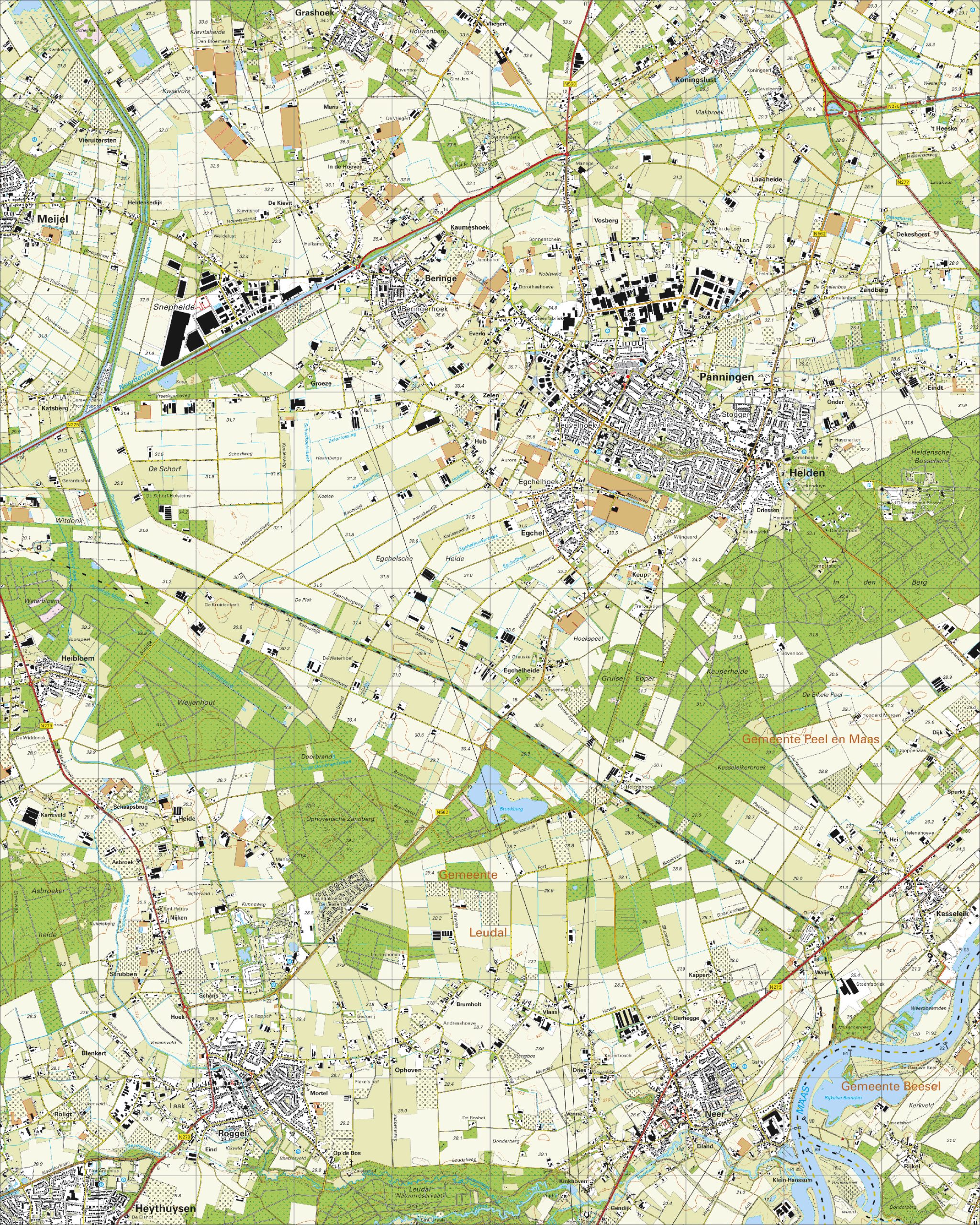 • Zeer nauwkeurige kaart met alle plaatsen, wegen en wateren van Panningen en omgeving