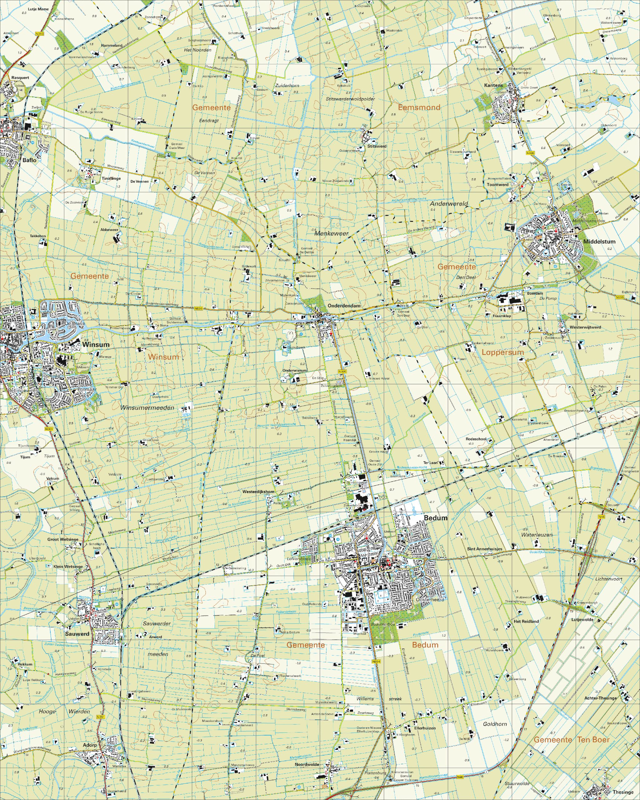 • Adorp Baflo Bedum Kantens Middelstum Noordwolde Onderdendam Rasquert Sauwerd Stitswerd Thesinge Tinallinge Toornwerd Westerwijtwerd Winsum