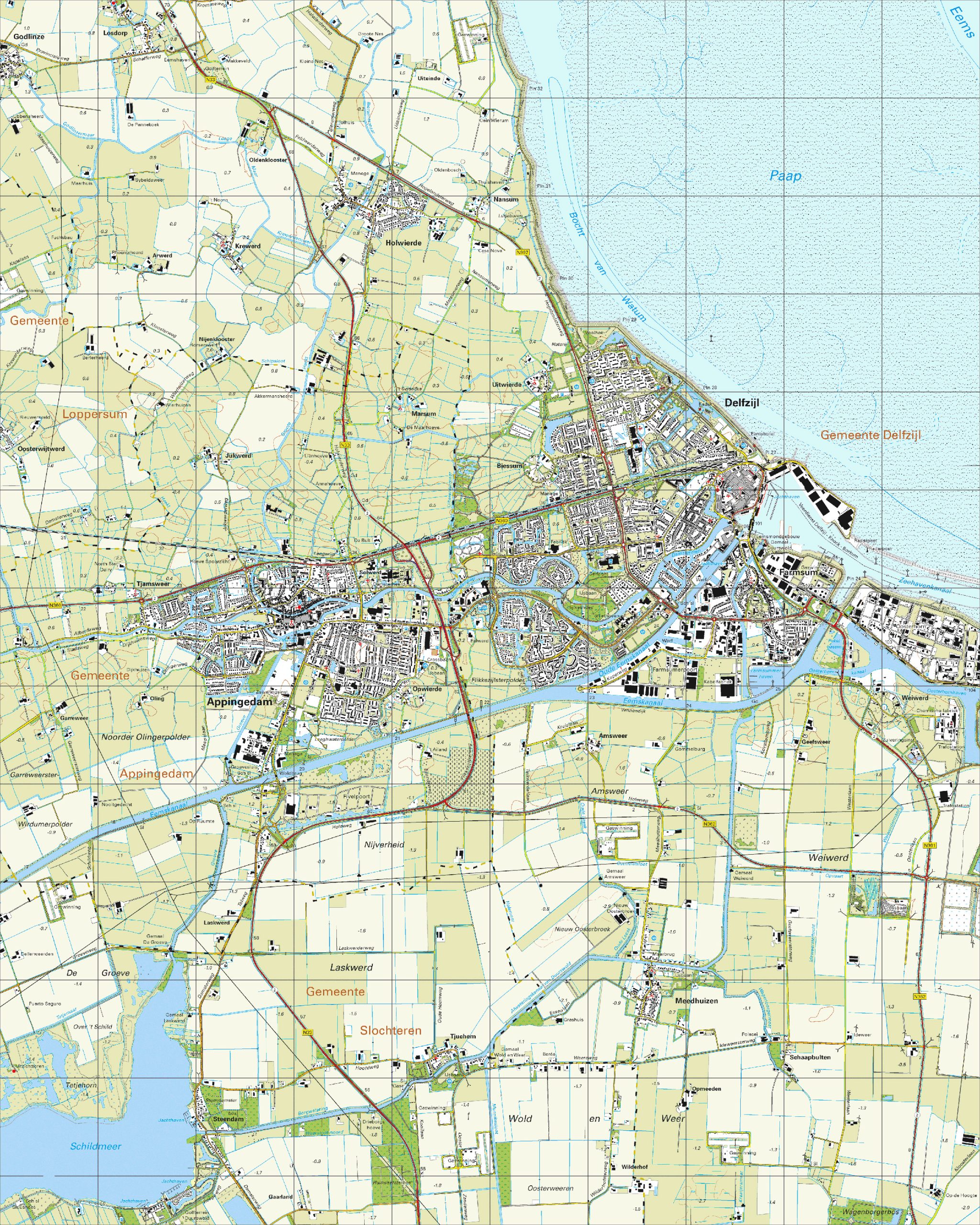 • Mooie overzichtskaart van Delfzijl met duidelijke gemeentegrenzen