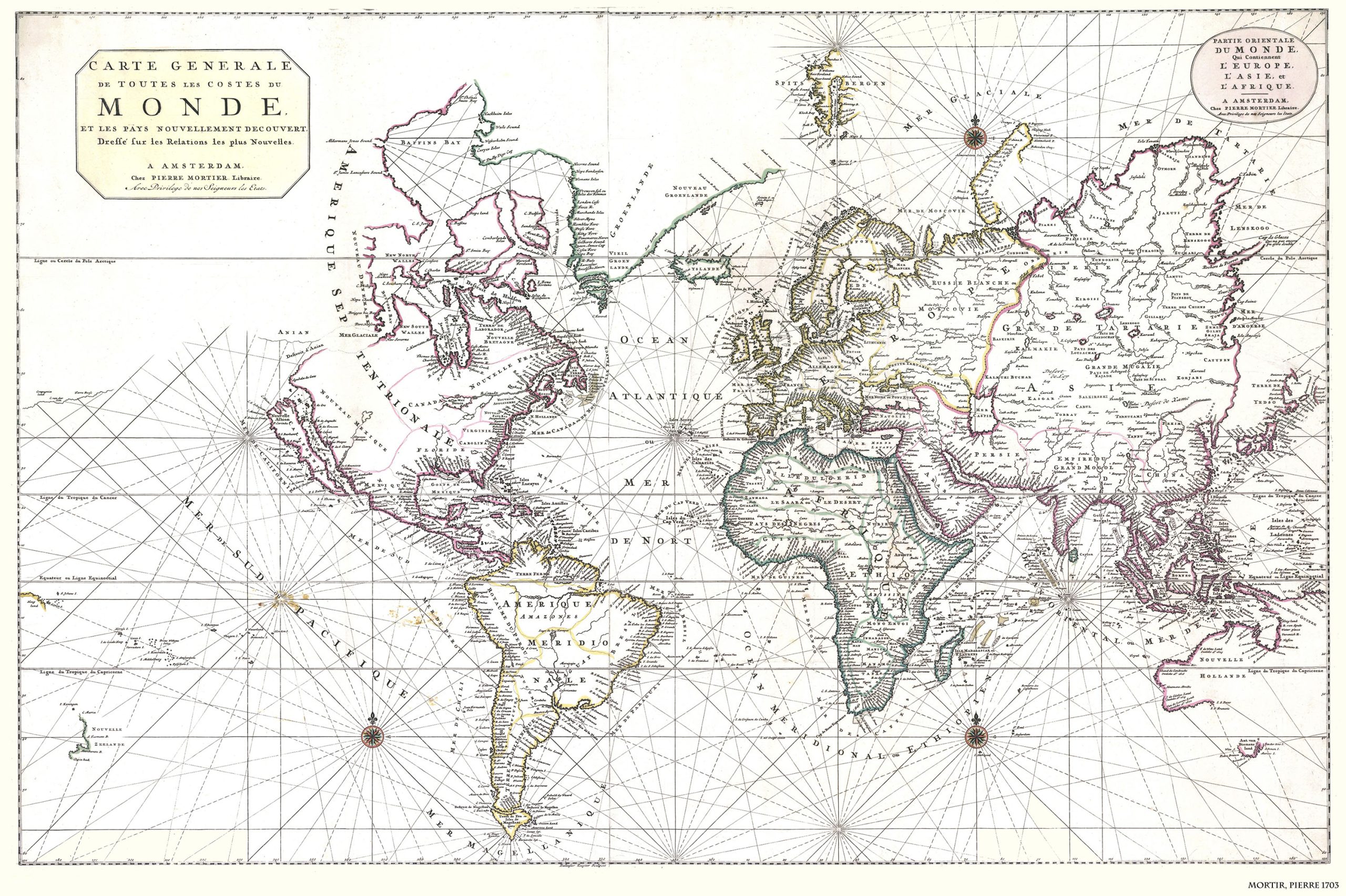 Wereldkaart Anno 1703 Pierre Mortir