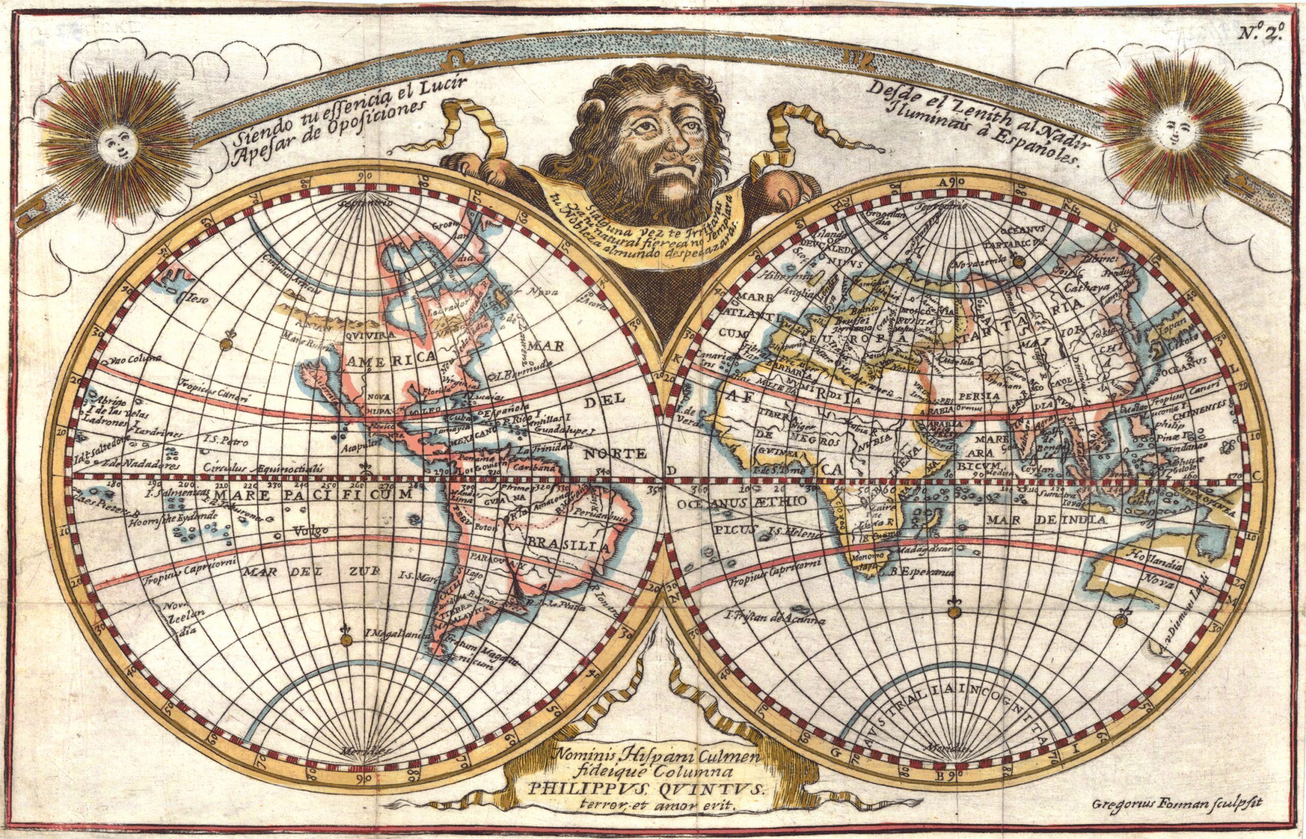 Historische wereldkaart uit 1711 in het Latijn vervaardigd door de cartograaf Bartolomeu Lasso.