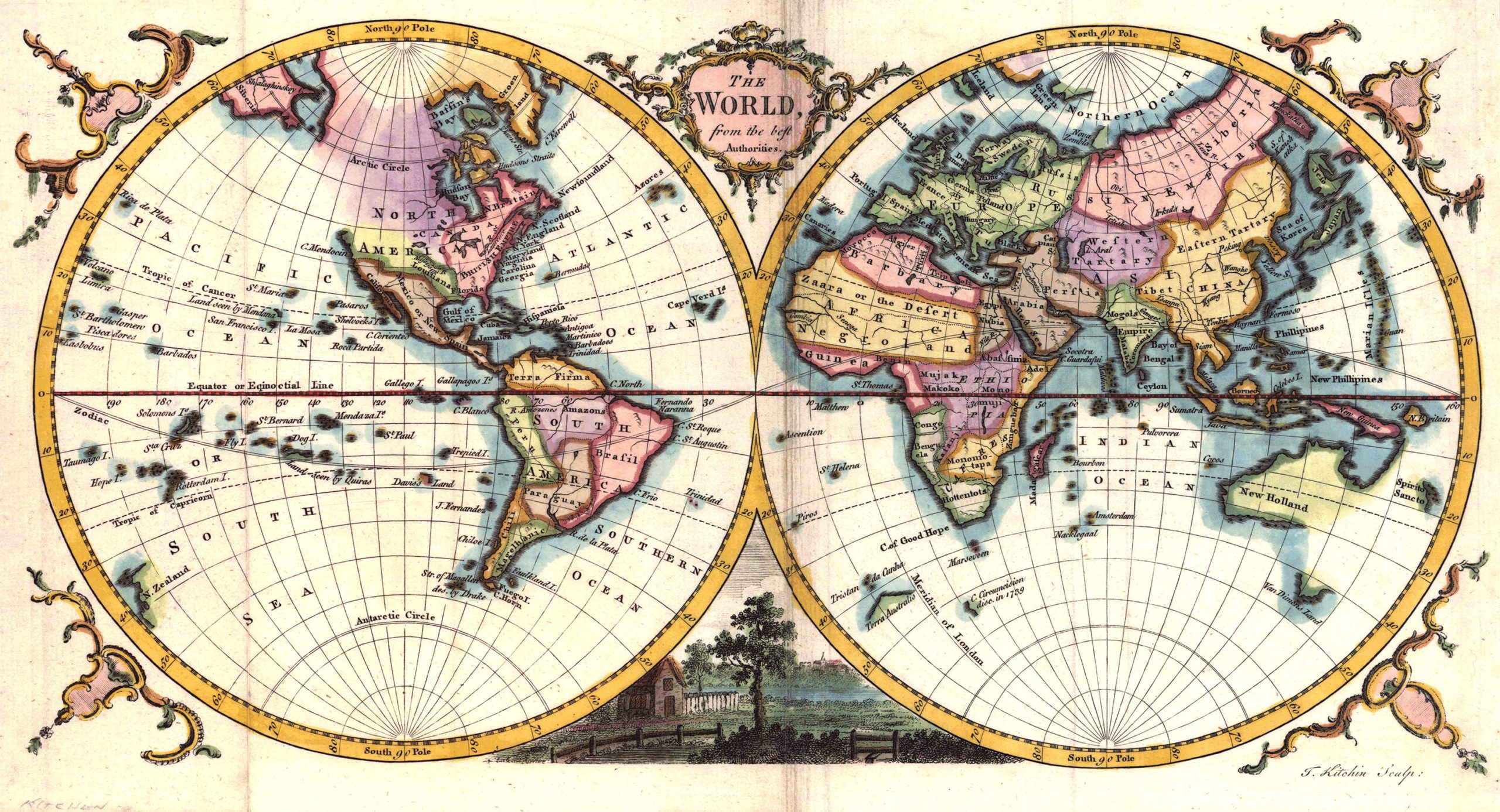 Mooie historische en decoratieve kaart van Thomas Kitchin. Oorspronkelijke druk uit 1780.