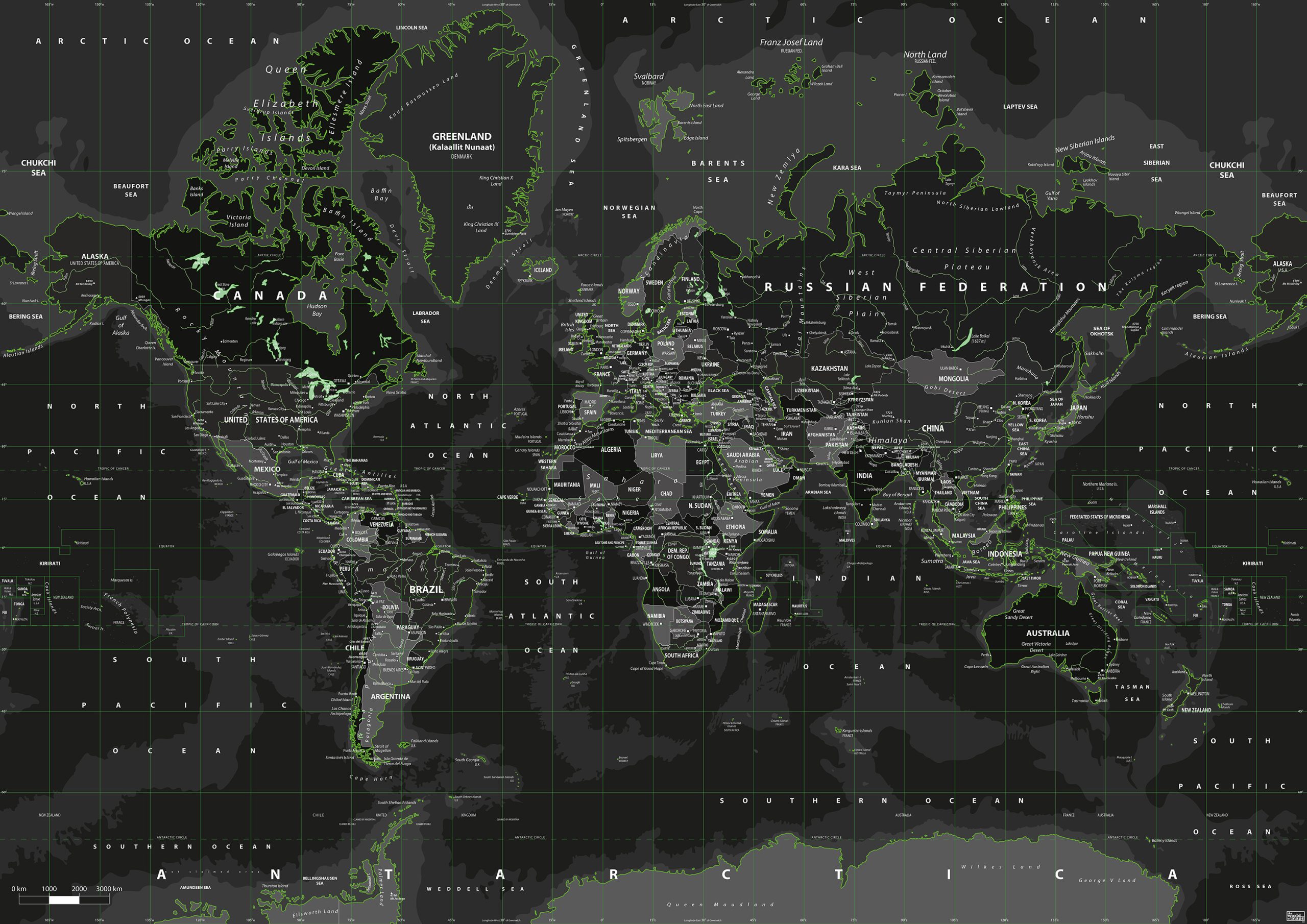 Wereldkaart Toxic Green 849